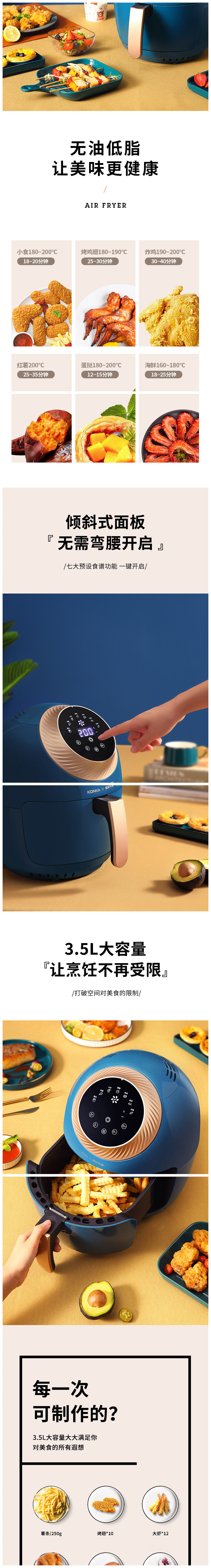 标题:康佳家用空气炸锅3.5L多功能无油烟智能定时电炸锅跨境专供空炸锅