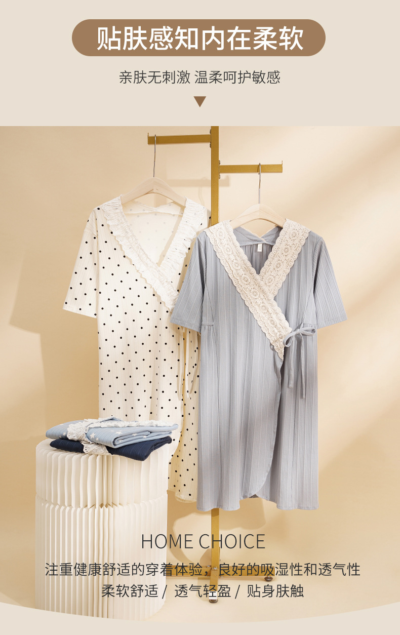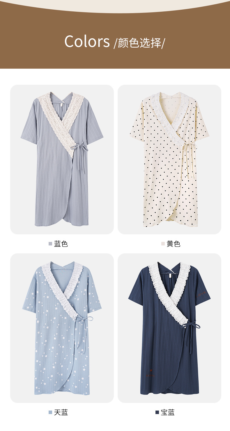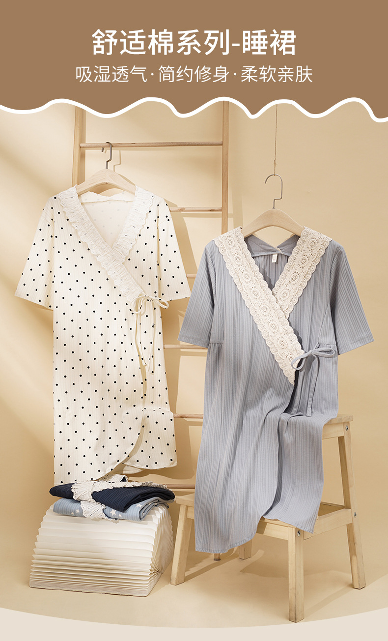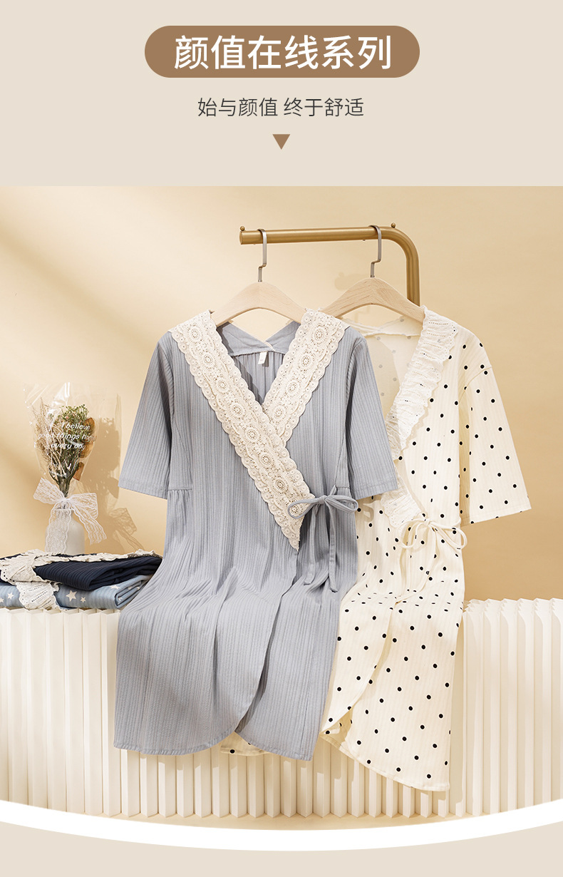 标题:夏季睡衣女短袖针织棉和服女士睡袍夏天性感家居服加大码浴袍外贸