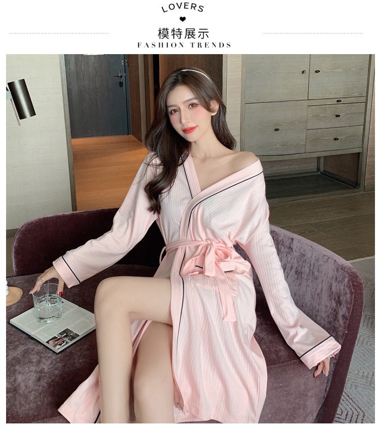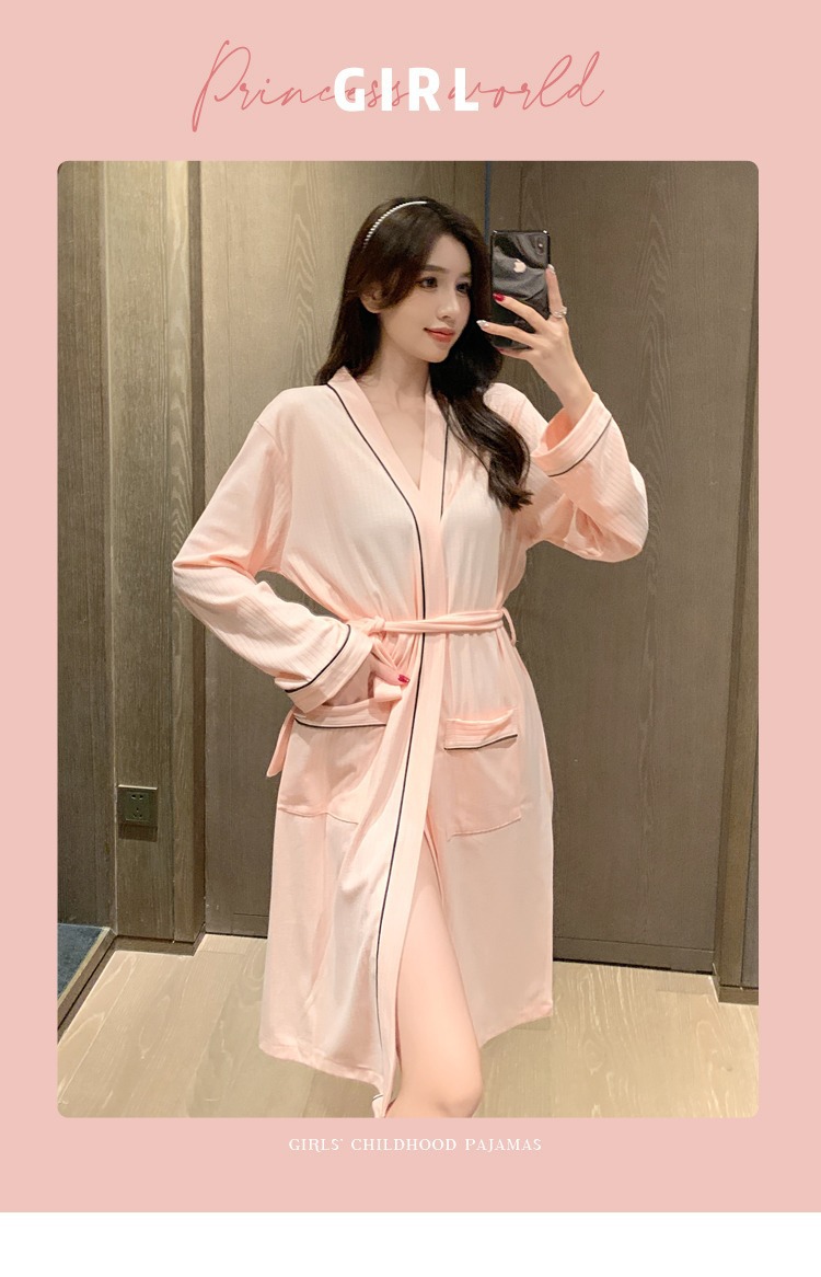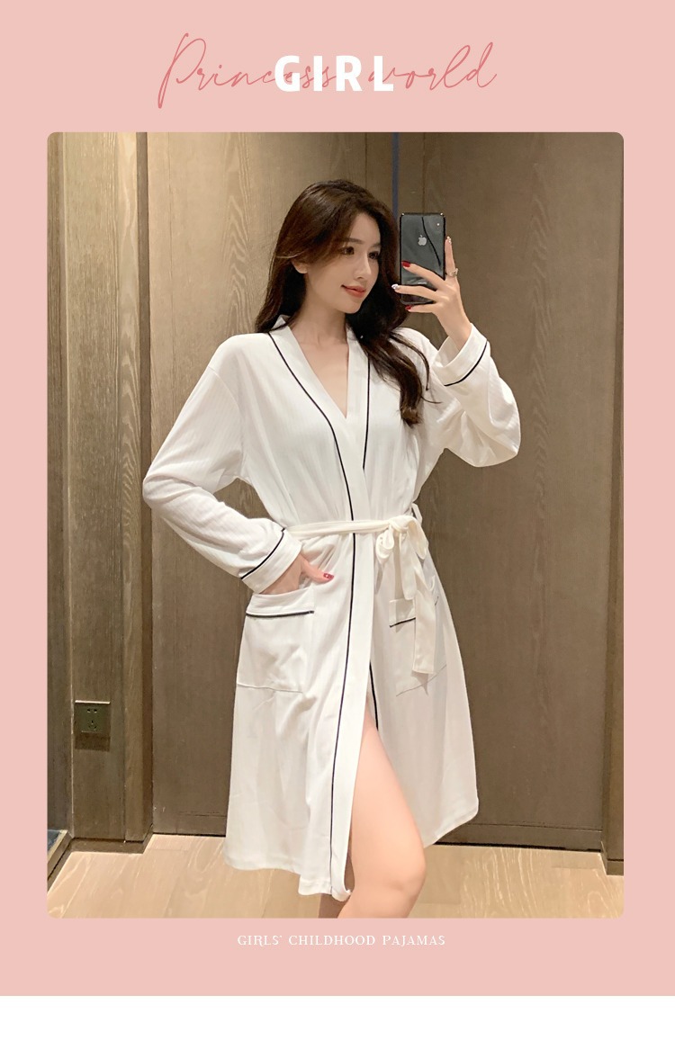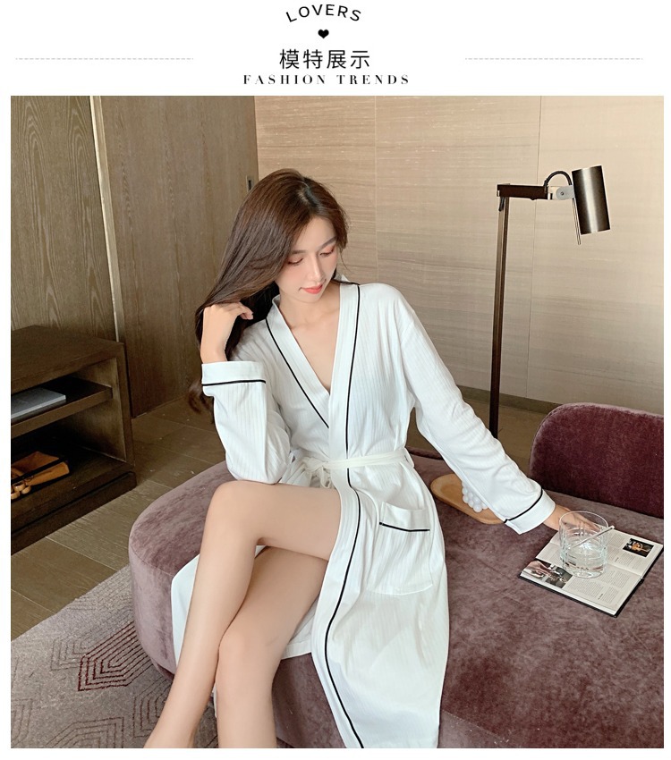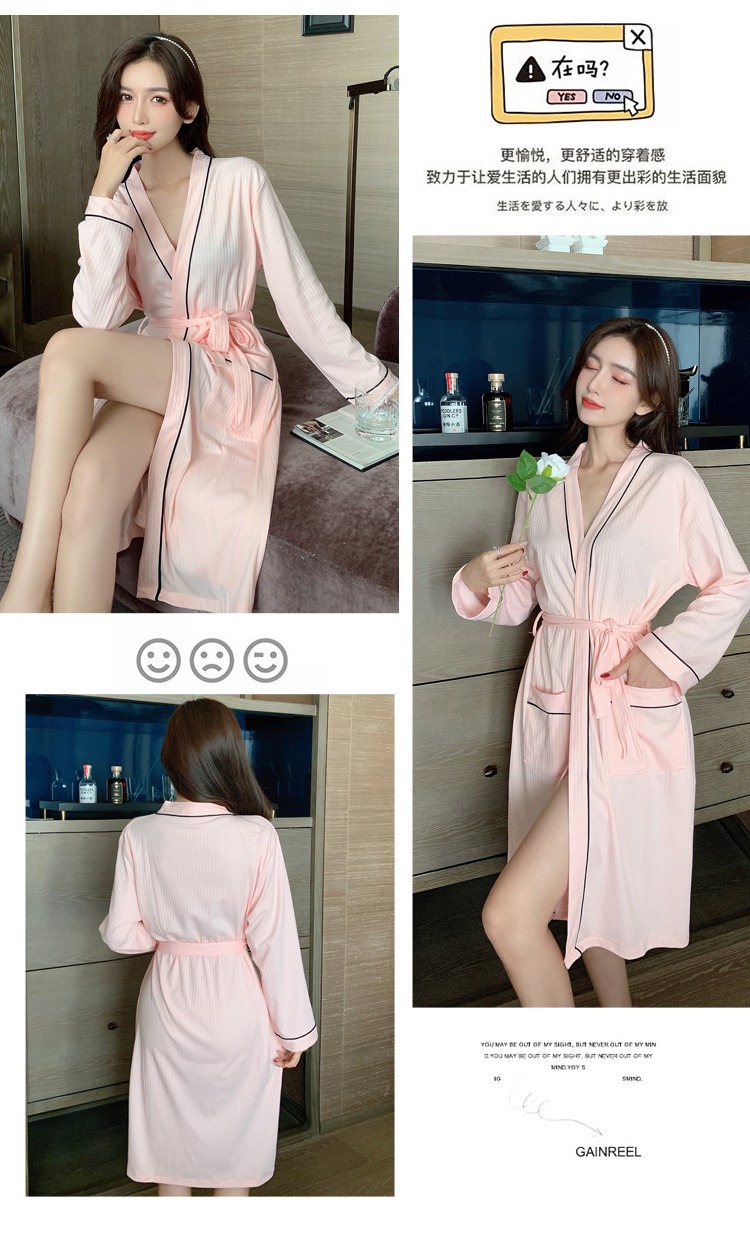 标题:纯棉浴袍睡衣女春秋季韩版简约甜美性感长袖中长款睡袍睡裙家居服