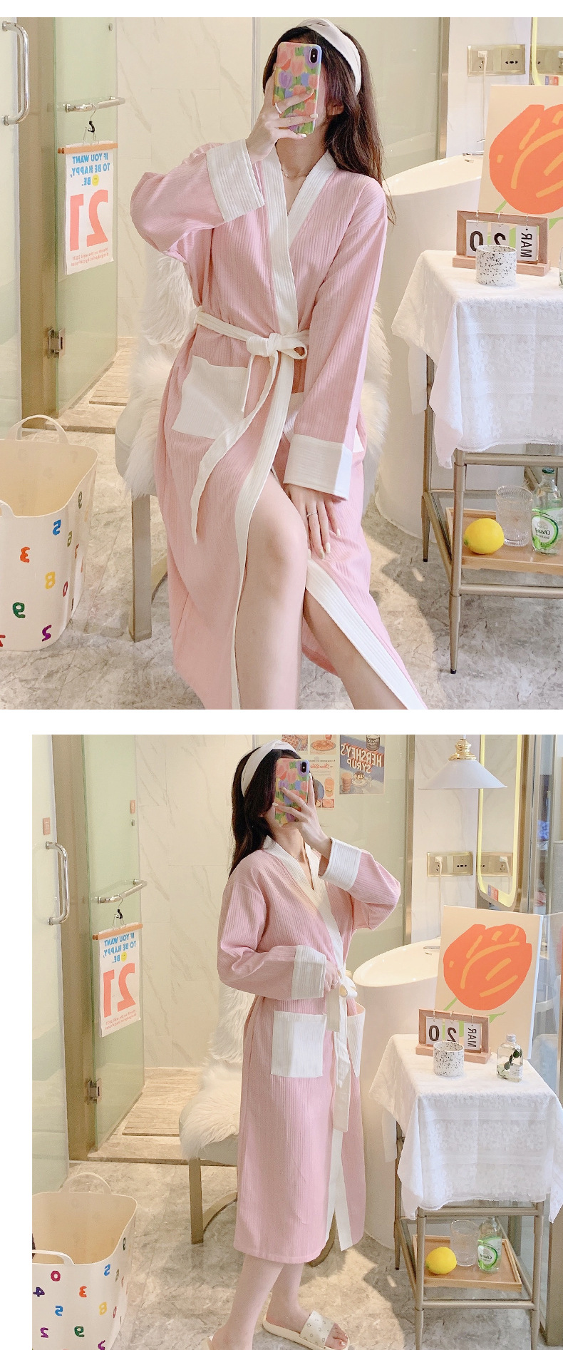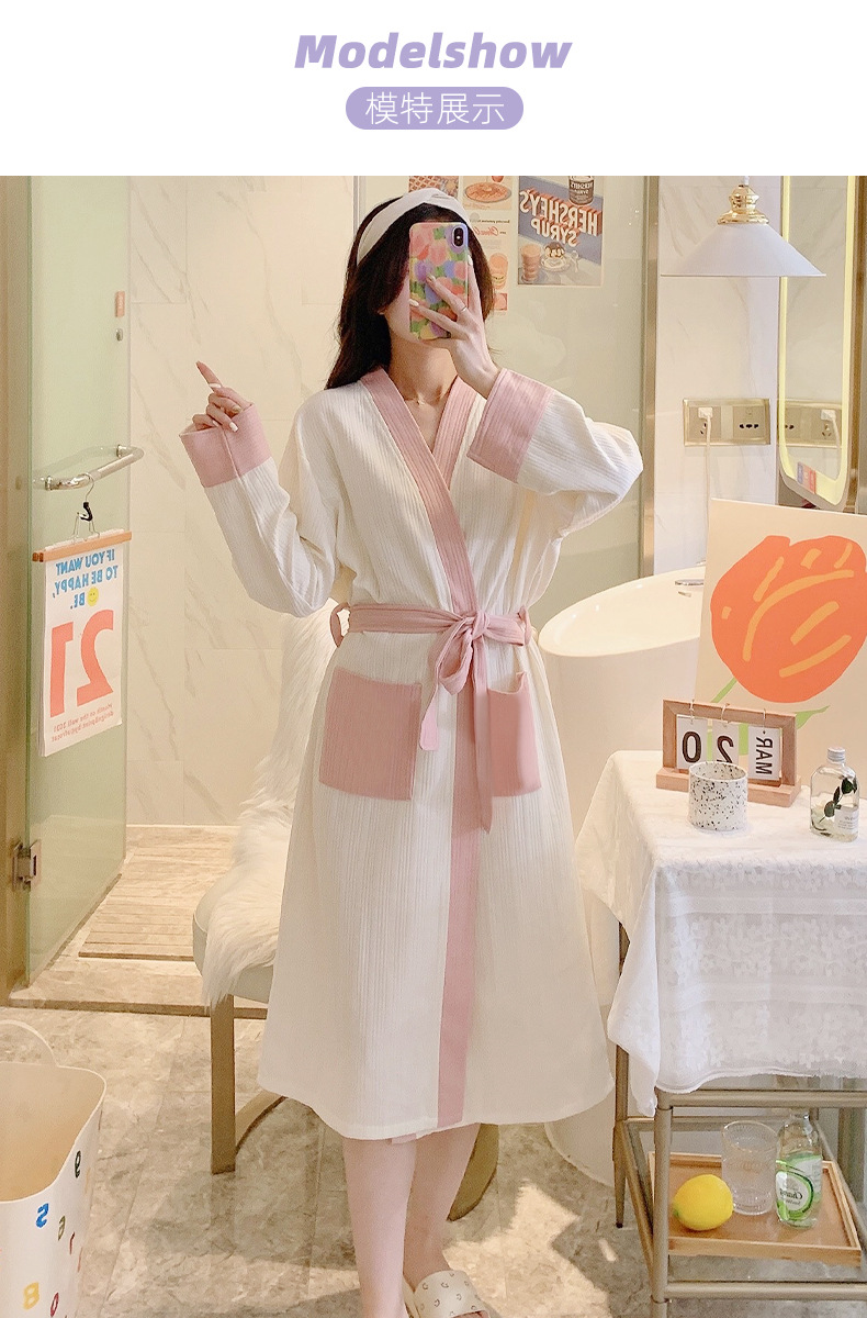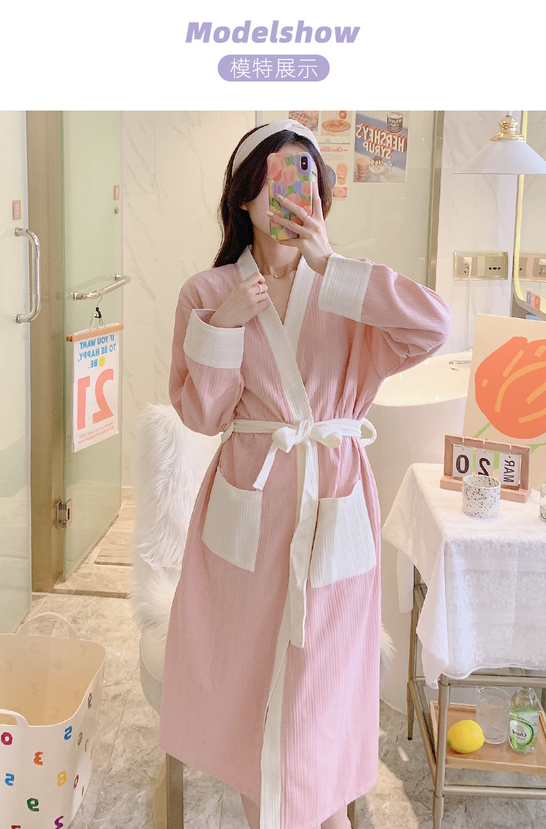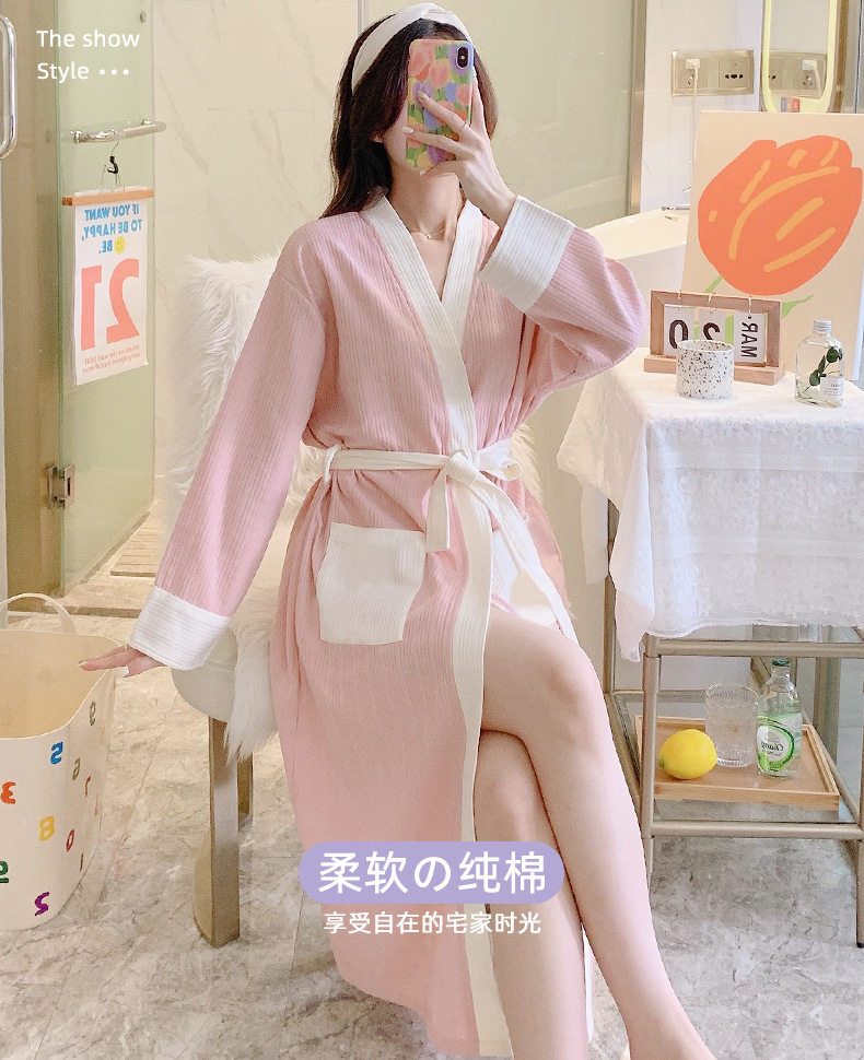 标题:纯棉睡袍女春秋款2022年新款秋冬简约浴袍长袖晨袍家居服睡衣9255