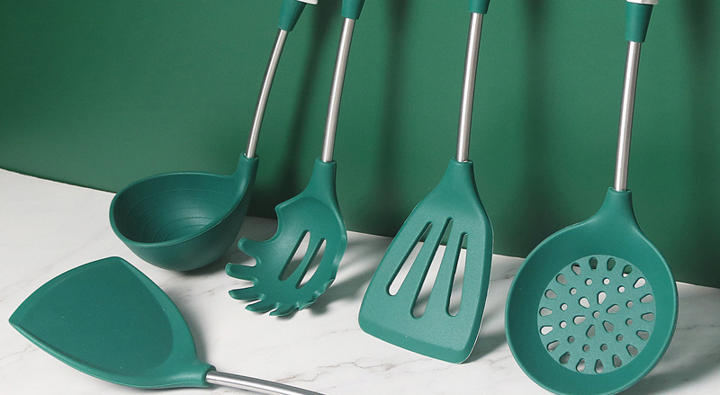 描述:产品类别:勺铲套件,是否进口:否,品牌:华毅,货号:KHLDF,材质:硅胶,产地:阳江,加印LOGO:可以,加工定制:是,产品上市时间:2021年春,价格段:30-40元,是否有专利:无,尺寸:绿色菜铲,灰色菜铲,黑色菜铲,绿色漏铲,灰色漏铲,黑色漏铲,绿色捞篱,灰色捞篱,黑色捞篱,绿色汤勺,灰色汤勺,黑色汤勺,绿色粉抓,灰色粉抓,黑色粉抓,绿色饭勺,黑色饭勺,绿色6套装,黑色6套装,灰色5套装,绿色5件套,黑色5件套,主要下游平台:亚马逊,主要销售地区:欧洲,有可授权的自有品牌:是,是否跨境出口专供货源:是,风格:现代简约,版权:无,功能:不粘锅,防滑,耐高温,防烫,手柄材质:304不锈钢,