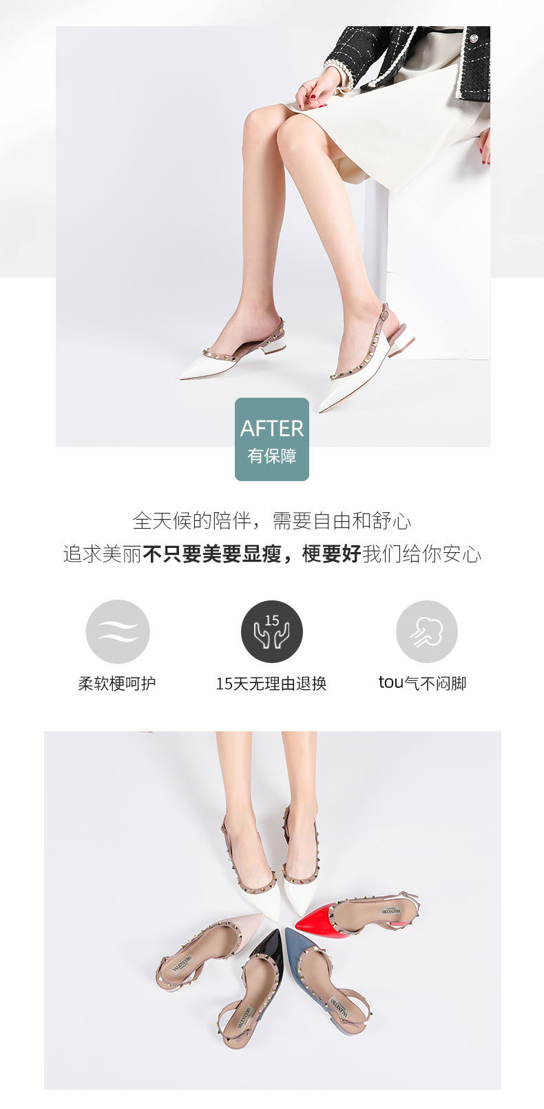 标题:包头凉鞋女外穿2022夏尖头后空拖鞋铆钉高跟鞋粗跟甜美伴娘鞋批发