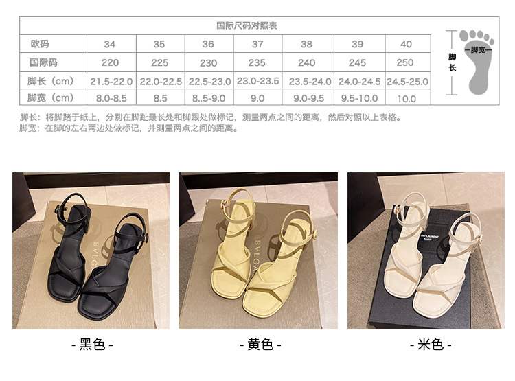 标题:法式高跟小众设计高级感仙女鞋子2022年新款夏季中跟黑色韩系凉鞋