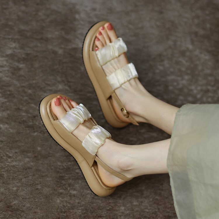 标题:【迦罗亚】厚底凉鞋女2022年仙女风罗马百搭外穿平底增高女鞋