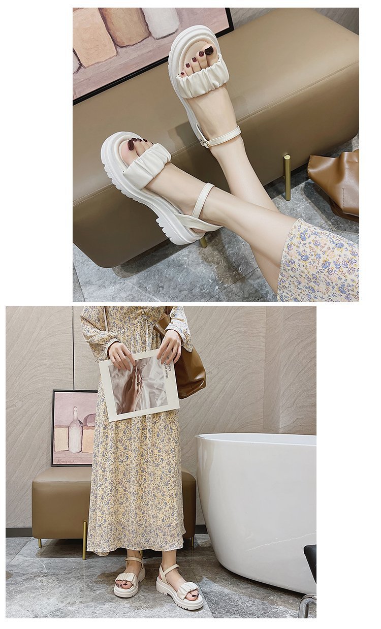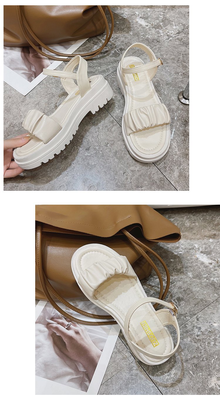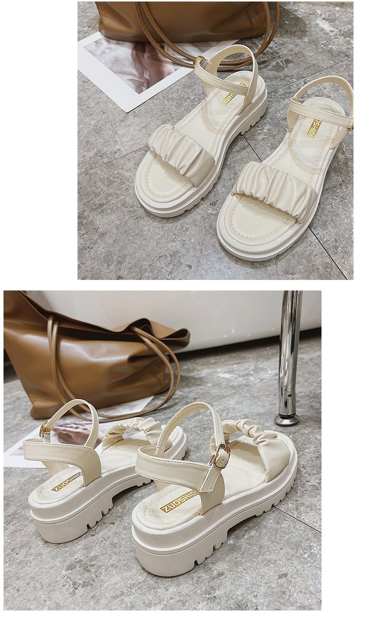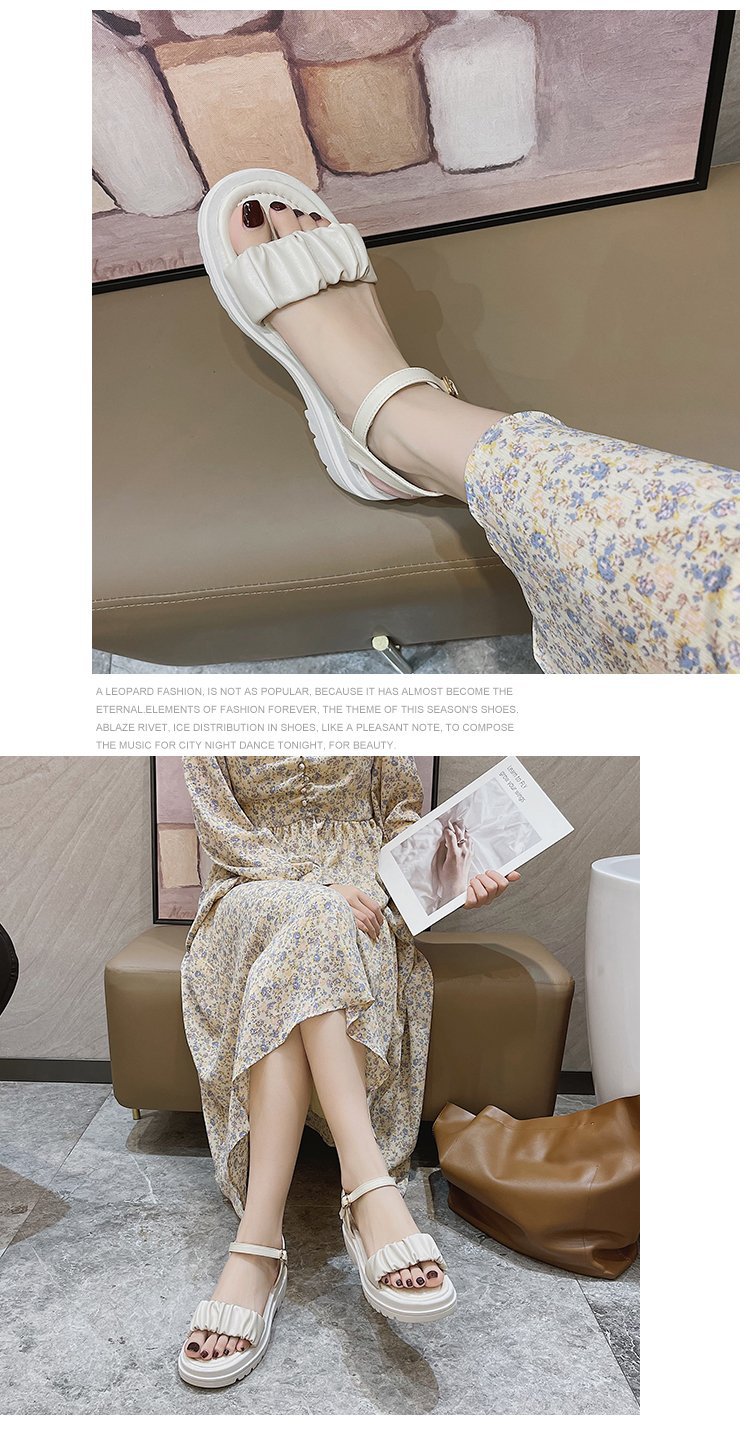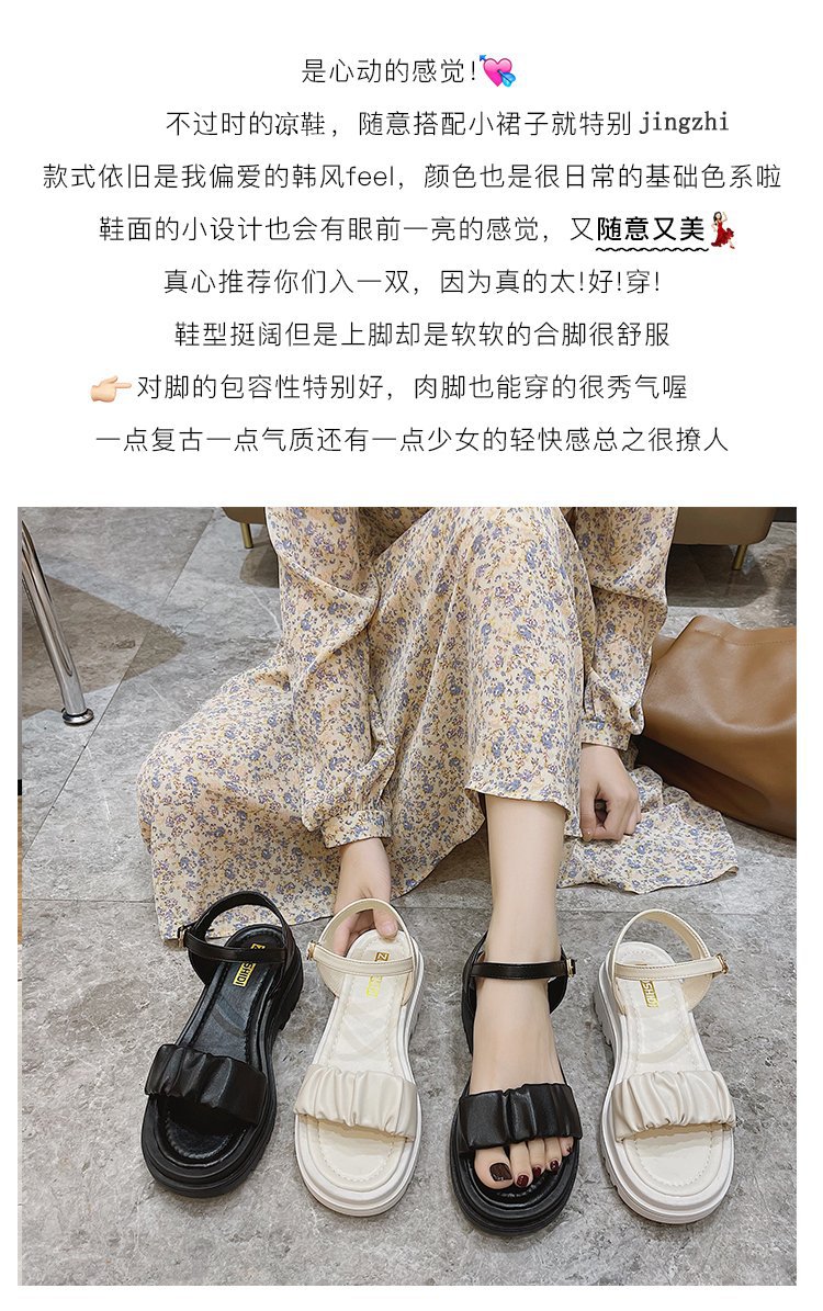 标题:仙女风罗马凉鞋女2021夏季网红松糕平底学生ins沙滩凉鞋一字扣带