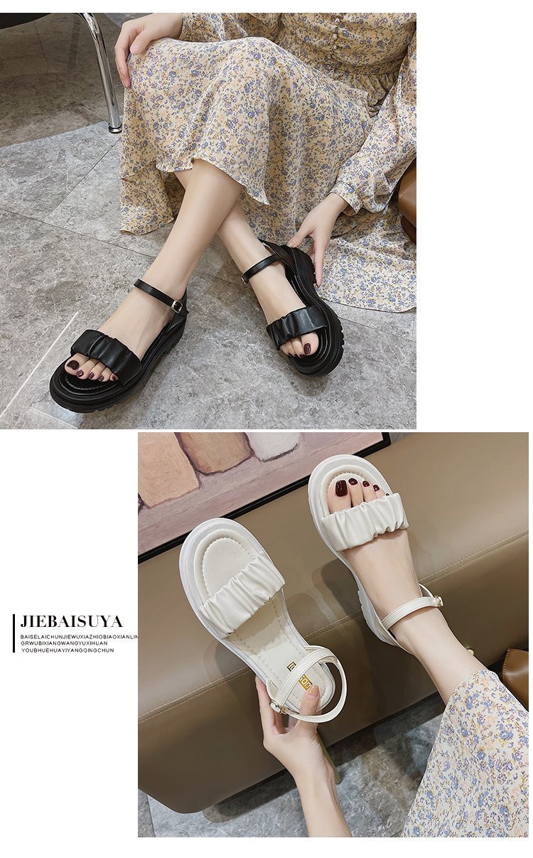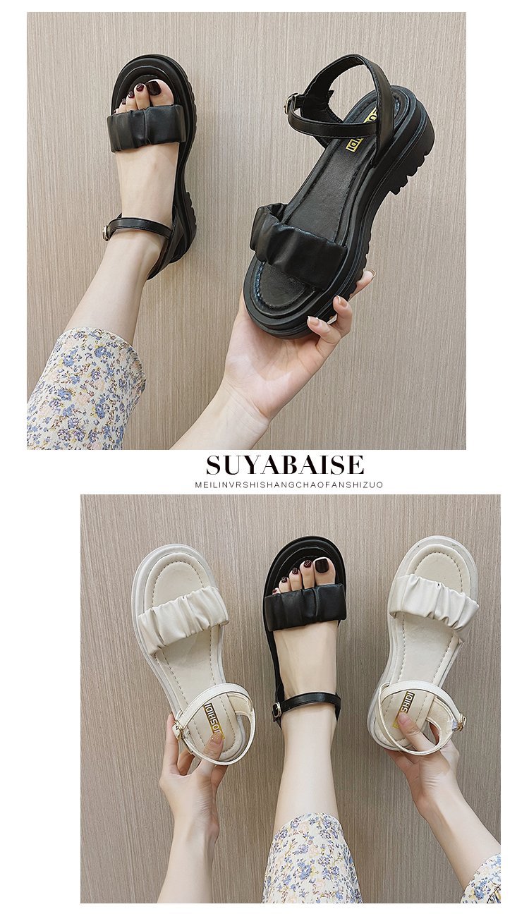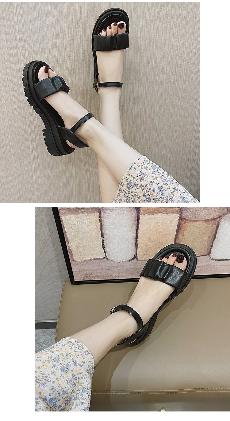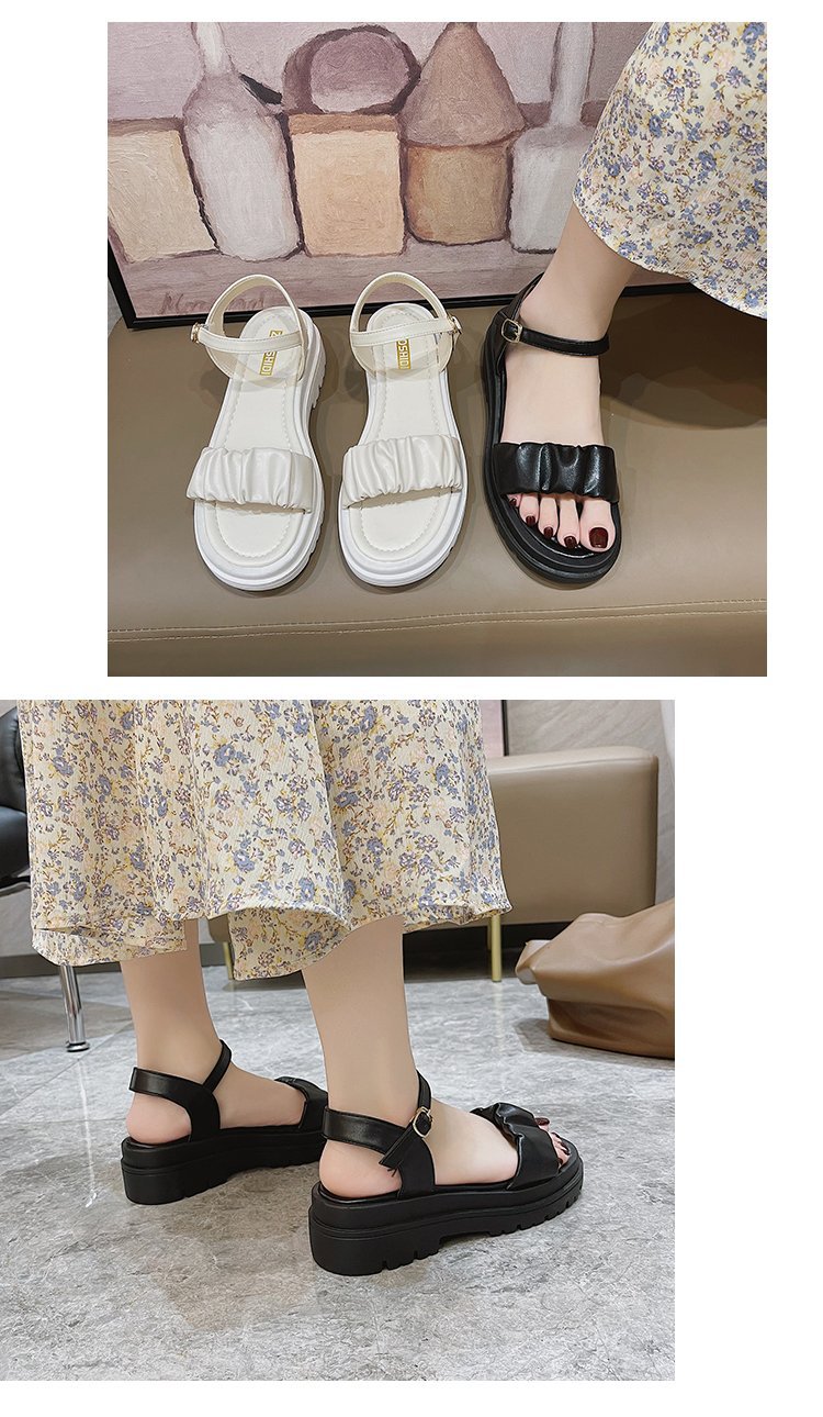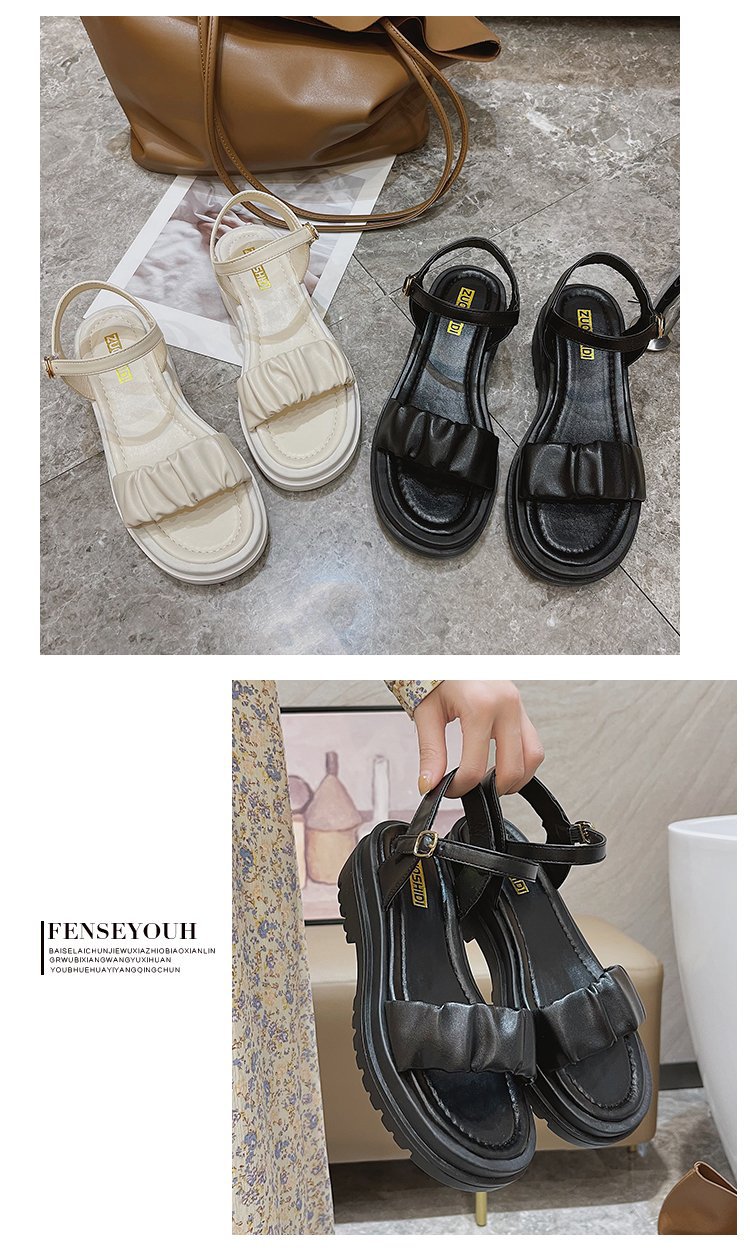 标题:仙女风罗马凉鞋女2021夏季网红松糕平底学生ins沙滩凉鞋一字扣带