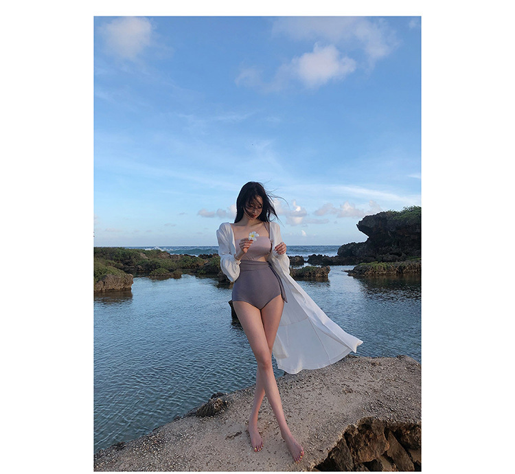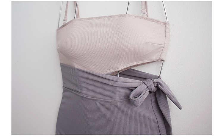标题:韩版小清新连体泳衣女性感漏腰系带显瘦小胸聚拢少女保守温泉泳衣