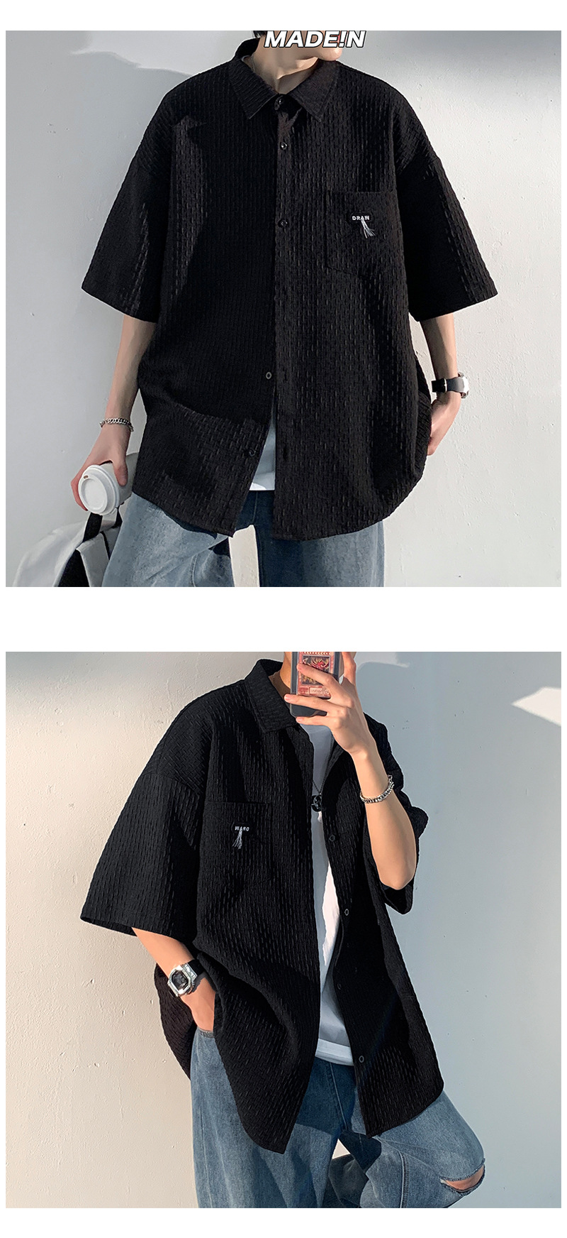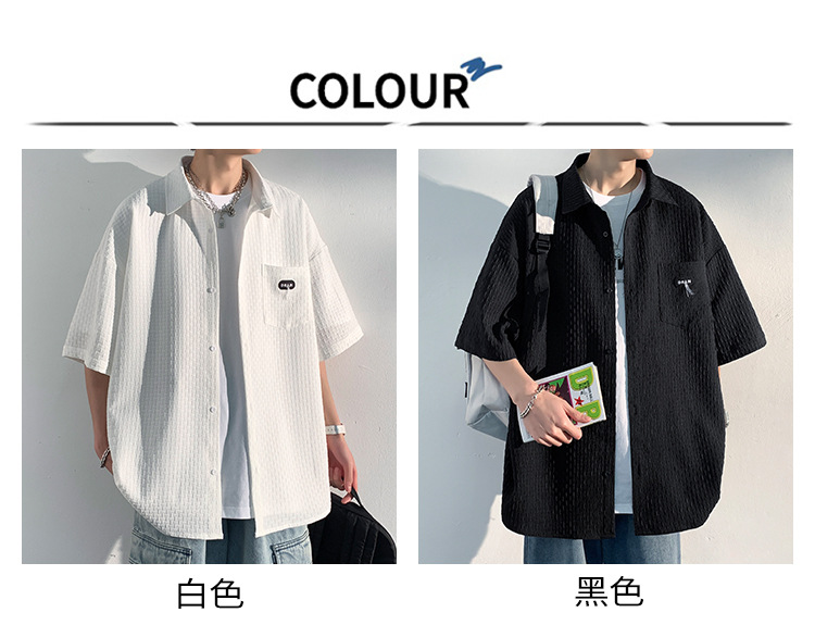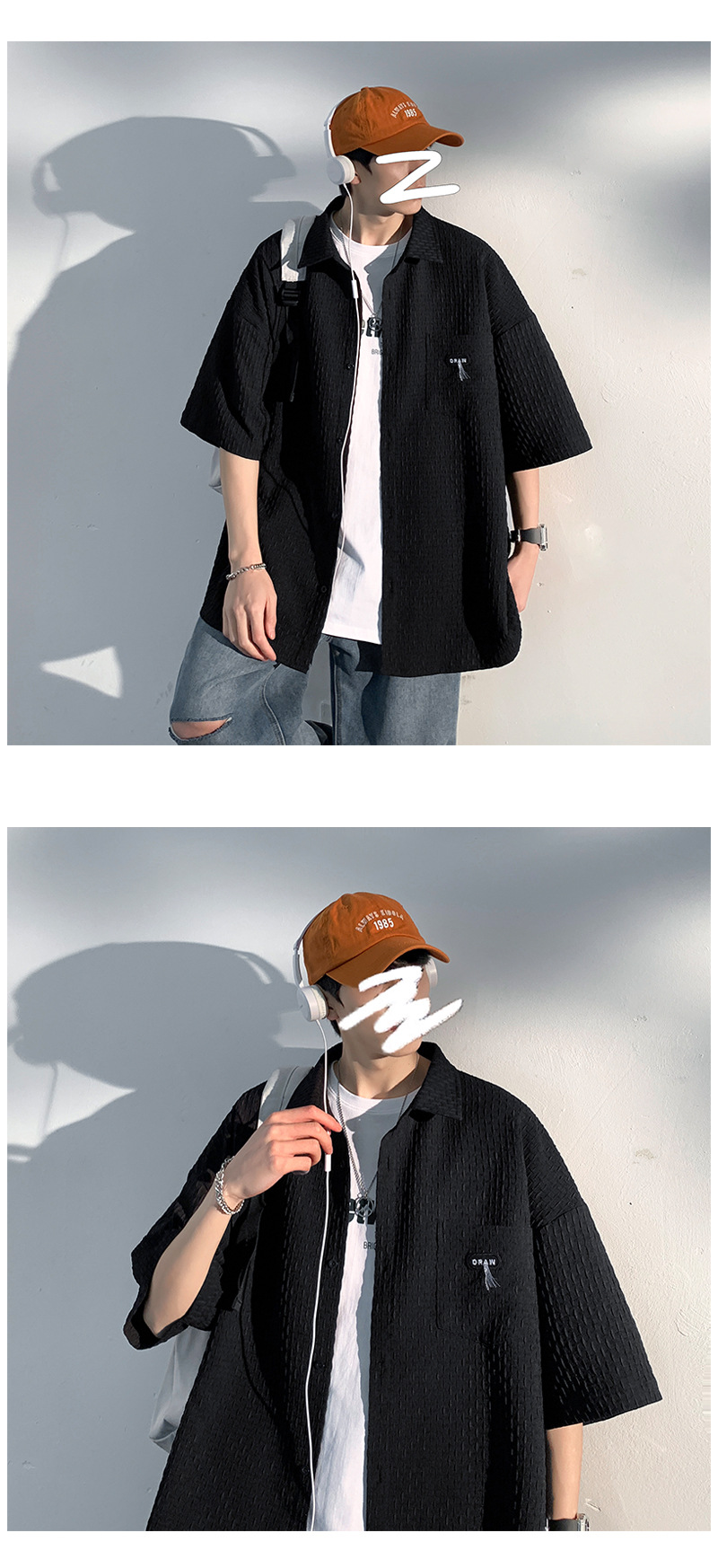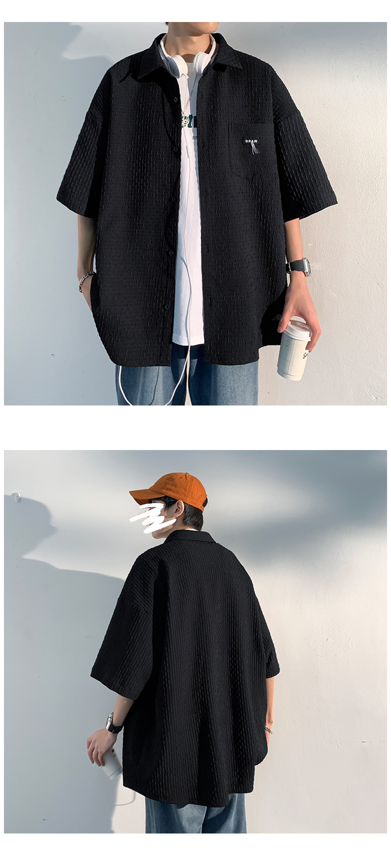 标题:夏季男式衬衫潮流休闲短袖衬衣时尚潮流宽松ins大码个性上衣男装