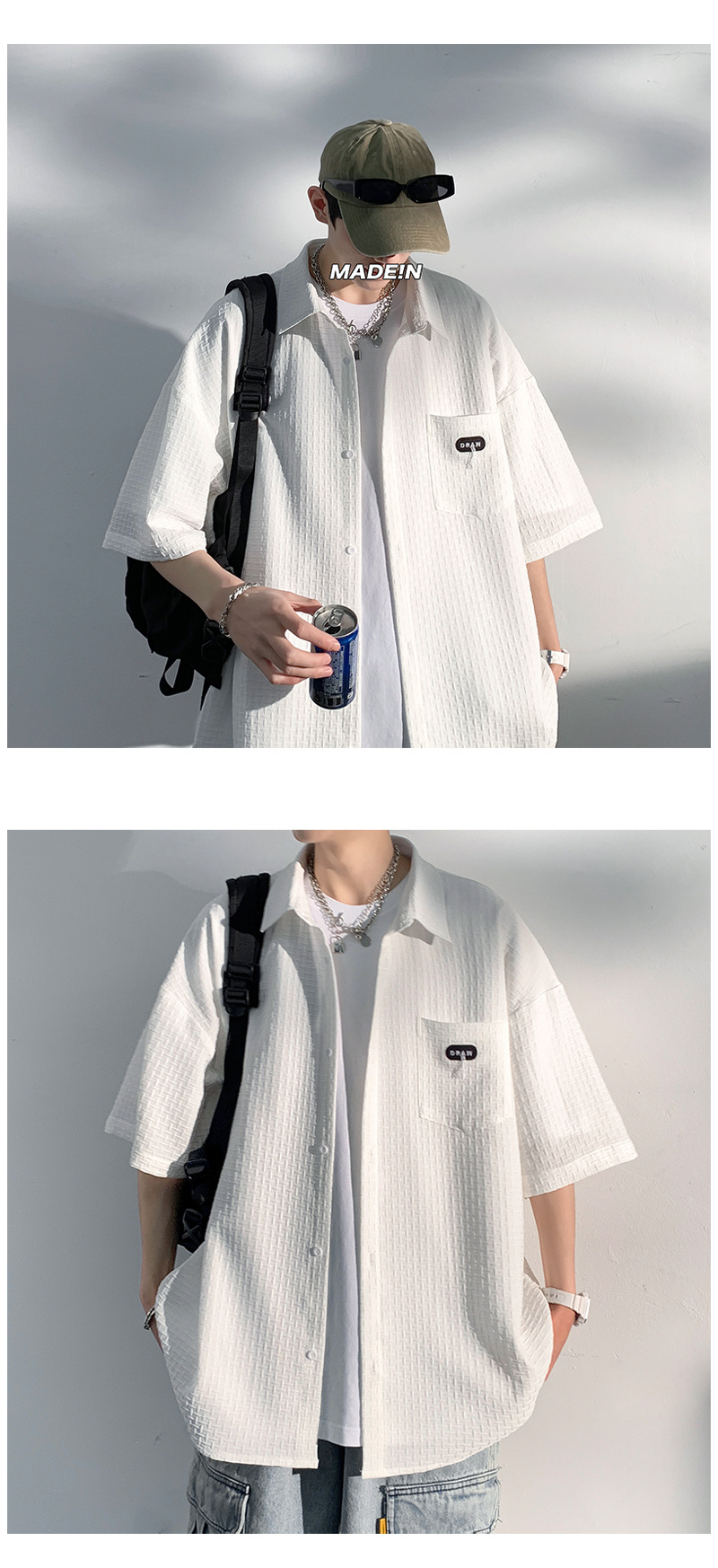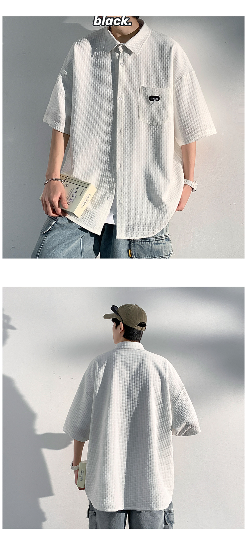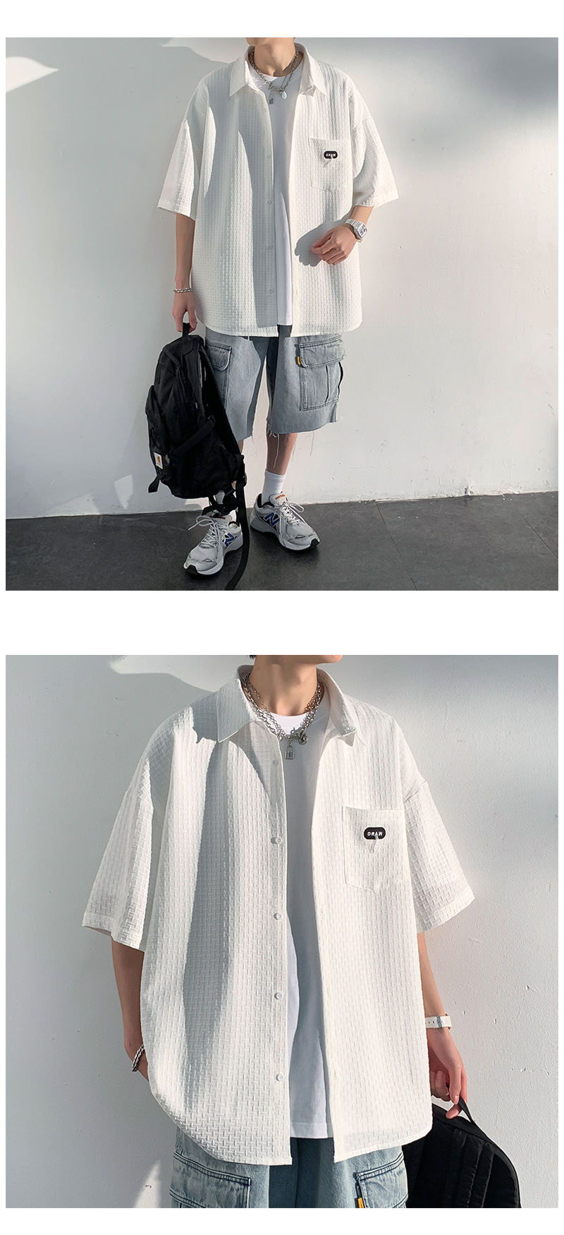 标题:夏季男式衬衫潮流休闲短袖衬衣时尚潮流宽松ins大码个性上衣男装