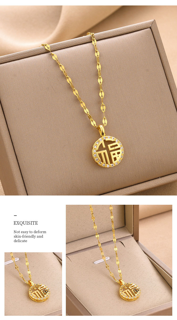 标题:チタン鋼透かし彫りの福の字がゴールドのハイエンドペンダントチタン鋼ネックレス女性の色落ちしないおしゃれなアクセサリー