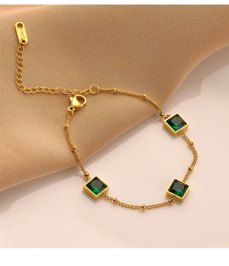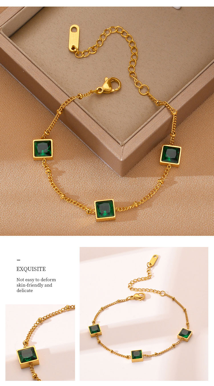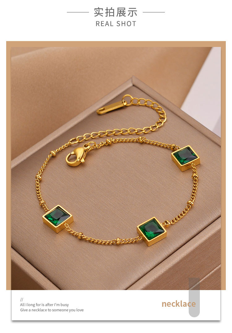 标题:人気の中国風ins潮モデル小人数デザイン感金色ブロックエメラルドジルコンチタン鋼ブレスレット