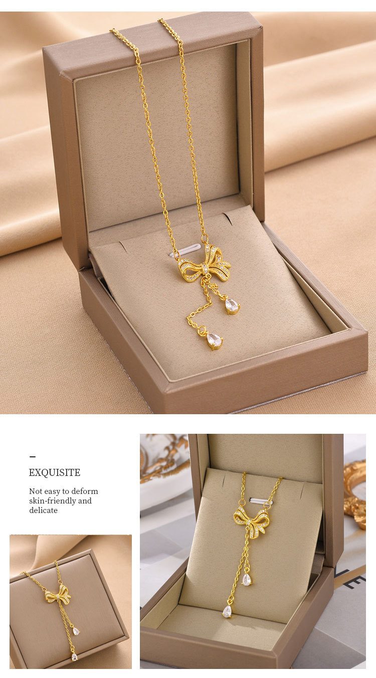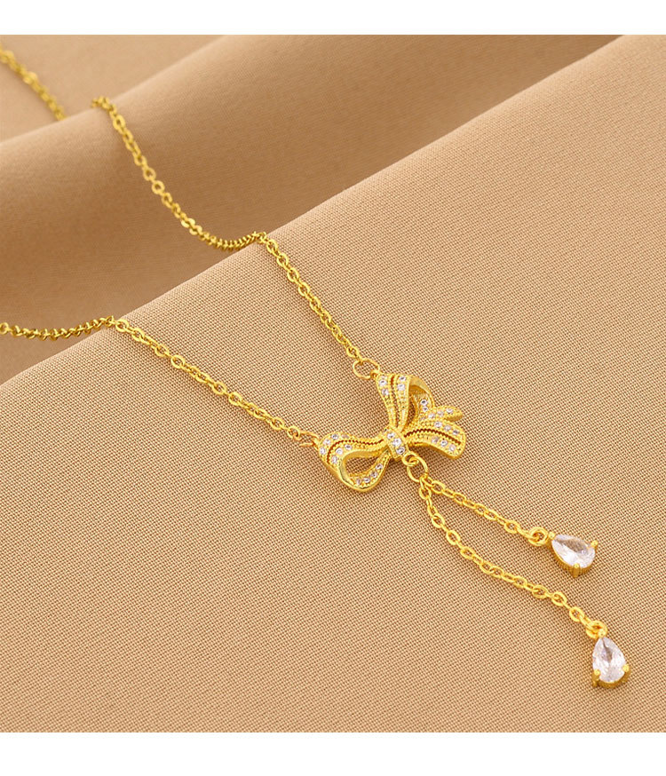 标题:2022種類のチタン鋼リボンフリンジネックレスクリスタルペンダント百掛小衆デザインシンプル爆型鎖骨チェーン