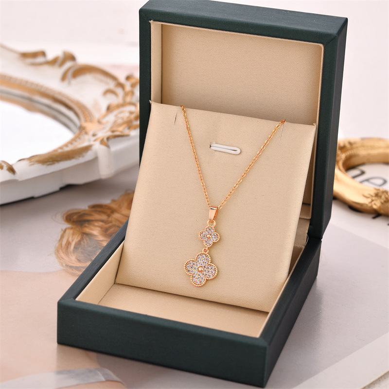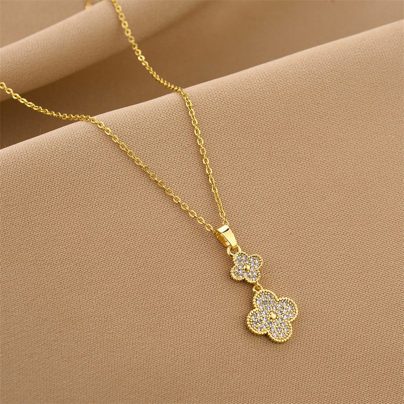 标题:欧米で流行している二重四つ葉のクローバーが贅沢でかわいいチタン鋼のネックレス女性の小人数デザインins流行ヒットアクセサリー