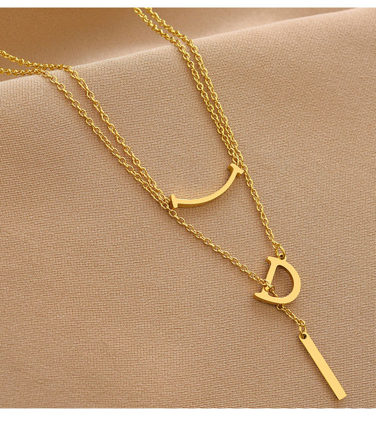 标题:デザイン感二重重ねチタンスチールアルファベットDペンダントチタンスチールネックレス色落ちしないアクセサリー