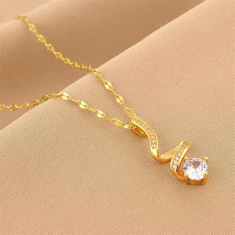 标题:スタイリッシュなdiy手作りチタン鋼ペンダントアクセサリー稲妻ペンダント新品韓国版2022金チタン鋼鎖骨ネックレス