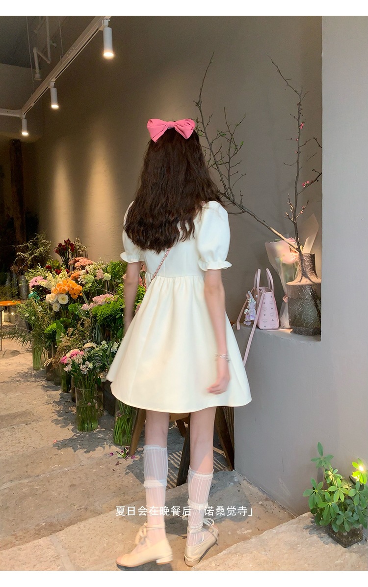 标题:夏はディナの後ろにフレンチエントロなスクエニックのパフスリーブワーピンスのハイウェイストスリムなキクラゲもとのプリンセスカート夏