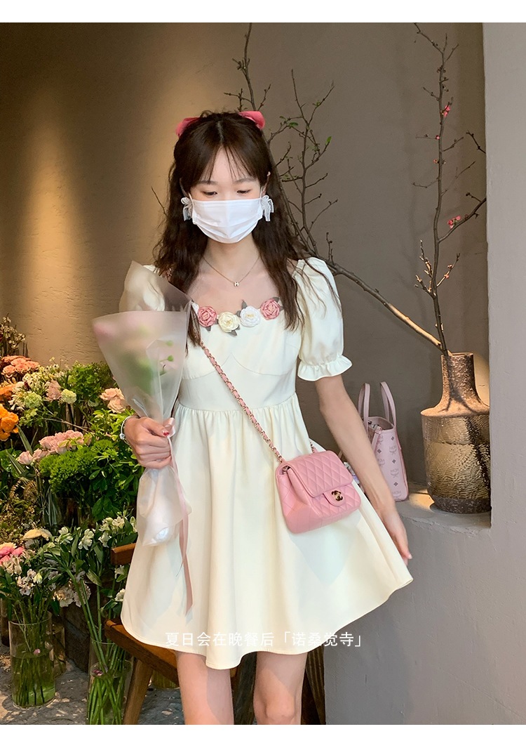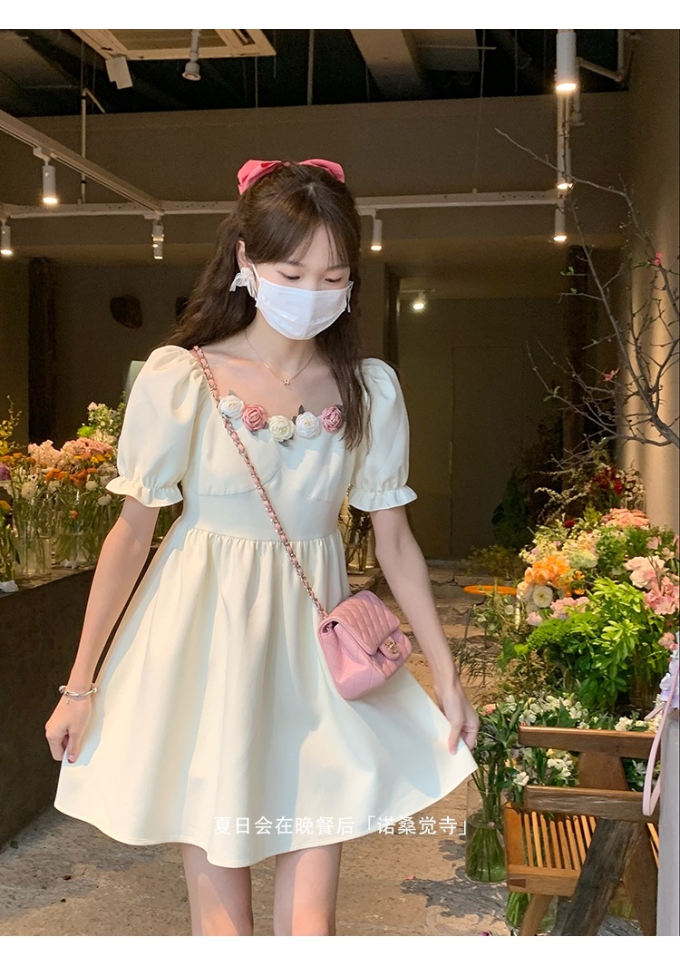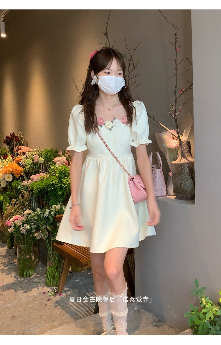 描述:生地名称:20213、図案:花、工芸:接合立体装飾、産地:広州、デザイン:ベルシュク、組合せわせ形式:単品、スカット長:スカット、スカット型:A字スカット、襟型:角襟、袖型:レギジュラー袖、袖丈:半袖、ウエット型:ハイウェイスト、流行要素:接合、発売年/季節:2022年夏、主生地成分:20213、主生地成分:20213、商品番号:6072、ブランド:自主ブランド、色:画像色、サイズ:S、M、L、ス