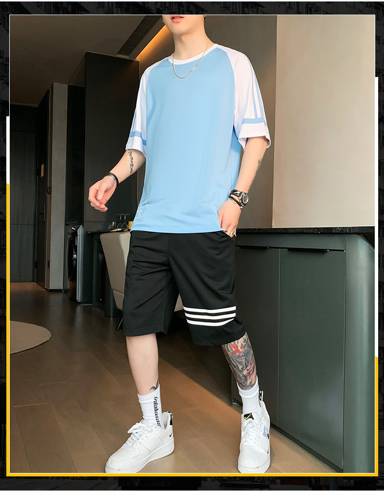 描述:商品の種類:現品、スタイル:スポーツ、厚さ:薄手、品番:摩-203半袖、パンツ長:半ズボン、上着スタイル:Tシャツ、上着袖丈:半袖、連帽かどうか:不連帽、適季節:夏、淘品種類:青春流行(18-24歳)、生地名:ポリエステル繊維、主生地成分:ポリエステル繊維(ポリエステル)、主生地成分の含有量:95、適用場面:スポーツ、在庫タイプ:丸単、発売年/季節:2021年夏、ブランド:後図、カラー:2103ブ