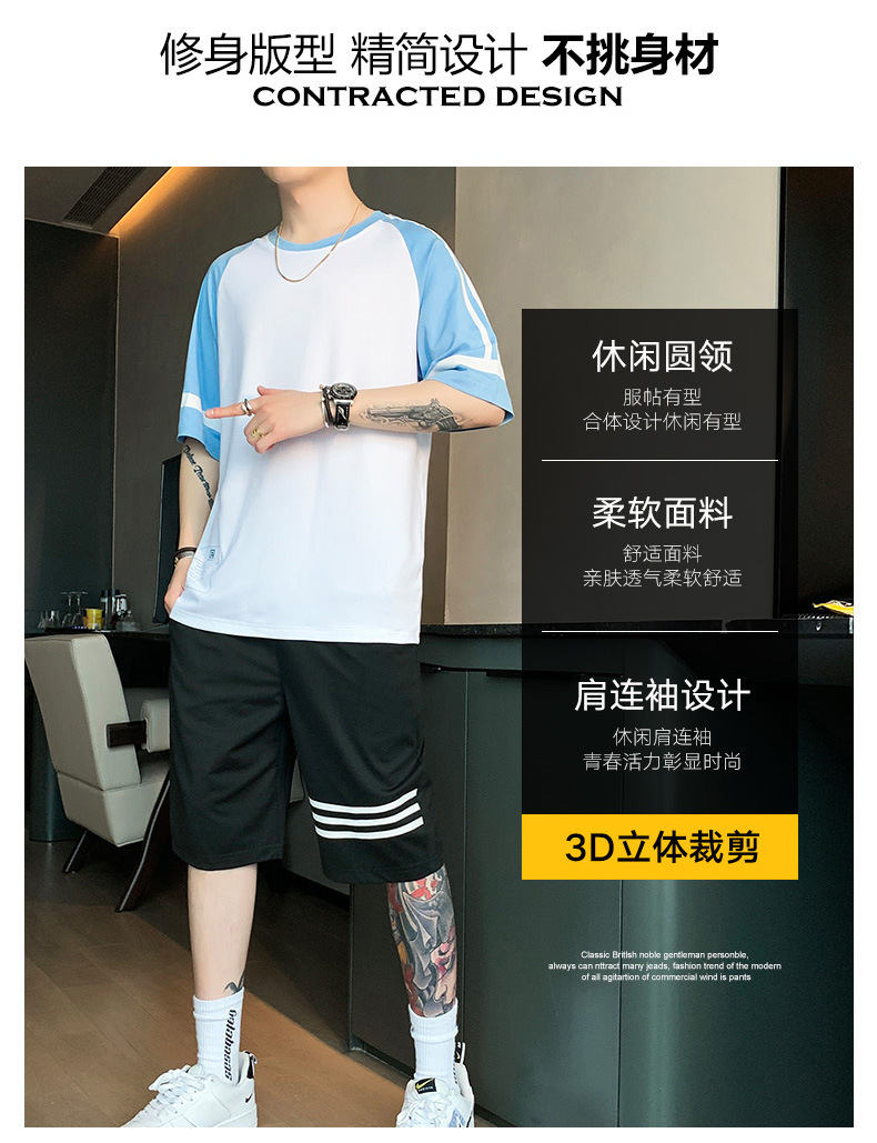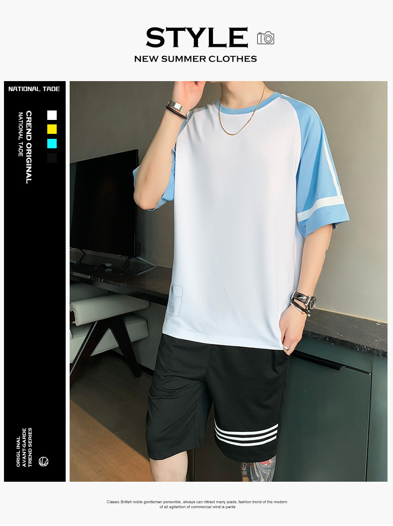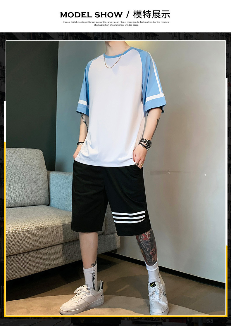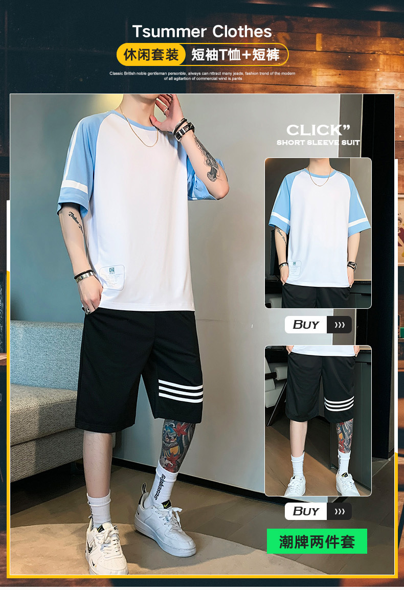 标题:夏の新作半袖Tシャツ男性スーツ韓国版青少年カジュアルスポーツゆったりパンツTシャツ2枚セット
