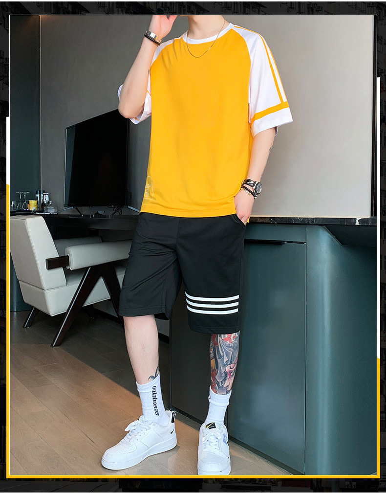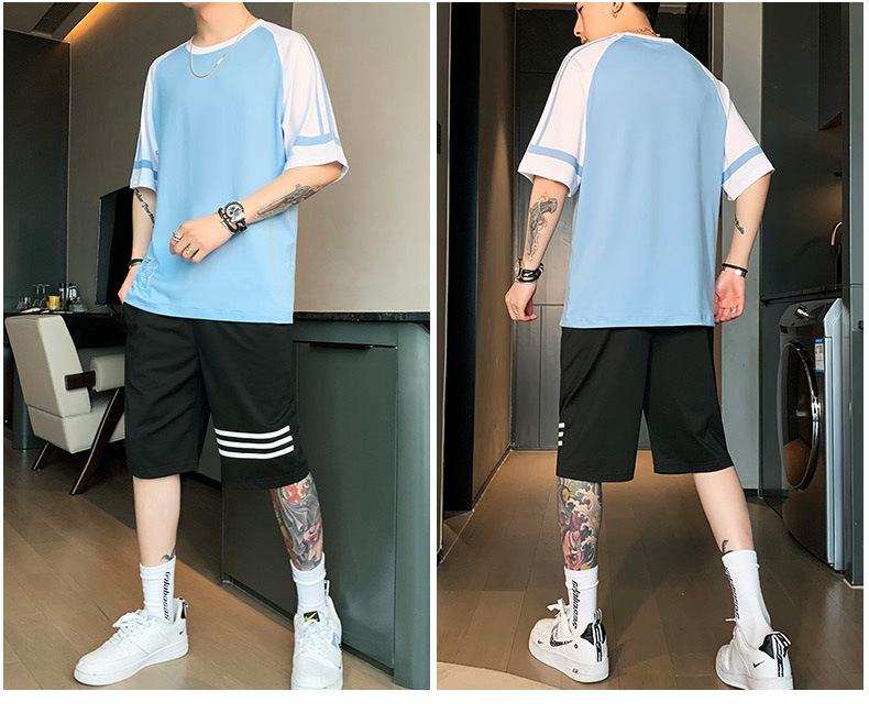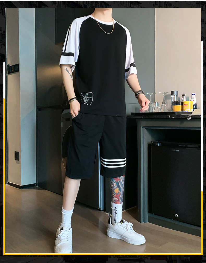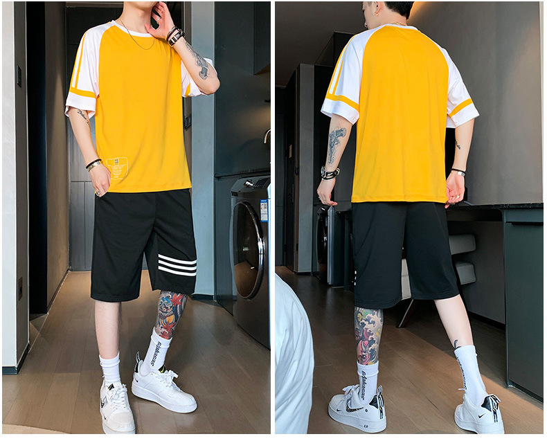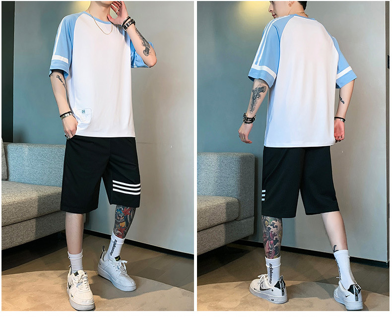 标题:夏の新作半袖Tシャツ男性スーツ韓国版青少年カジュアルスポーツゆったりパンツTシャツ2枚セット