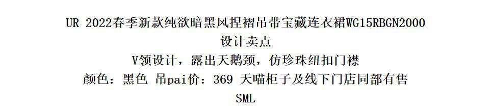标题:UR 2022秋季新款纯欲暗黑风捏褶吊带宝藏连衣裙WG15RBGN2000