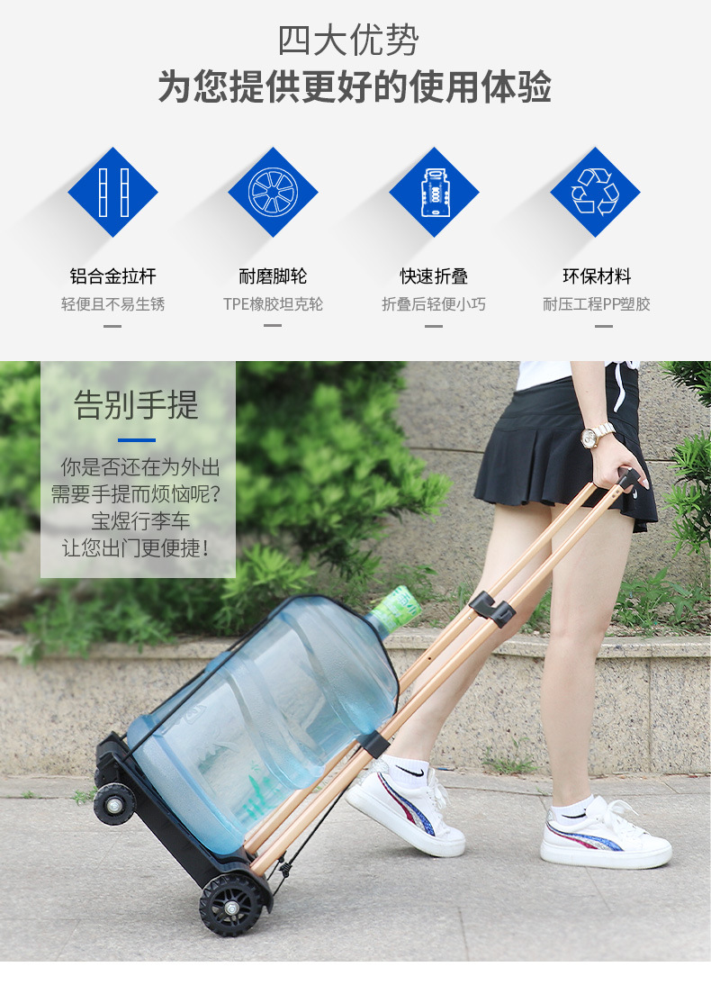 标题:直供静音轮折叠小拉车铝拉杆行李车手拉车老年旅行购物搬货买菜车