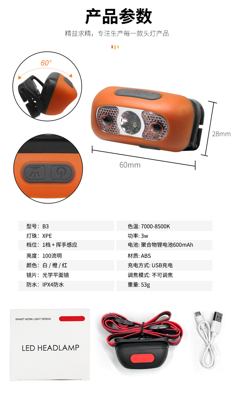 描述:产地:宁波西店,电源:充电,光源类型:LED,货号:B3-1,开关类型:轻按,品牌:DAINING,适用范围:钓鱼上饵,重量:32克,是否防水:是,照射距离:65M,连续照明时间:12,头带类型:涤纶,颜色:白色-上饵灯亮通宵,橙色-上饵灯亮通宵,黑色-上饵灯亮通宵,跑量款单次拿货30个起13.2,联系客服改价,是否跨境出口专供货源:否,儿童专用:否,