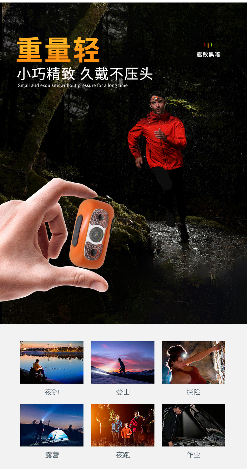 标题:钓鱼亮通宵头灯 头戴式上饵灯饵料灯钓鱼USB充电超轻超亮夜钓灯