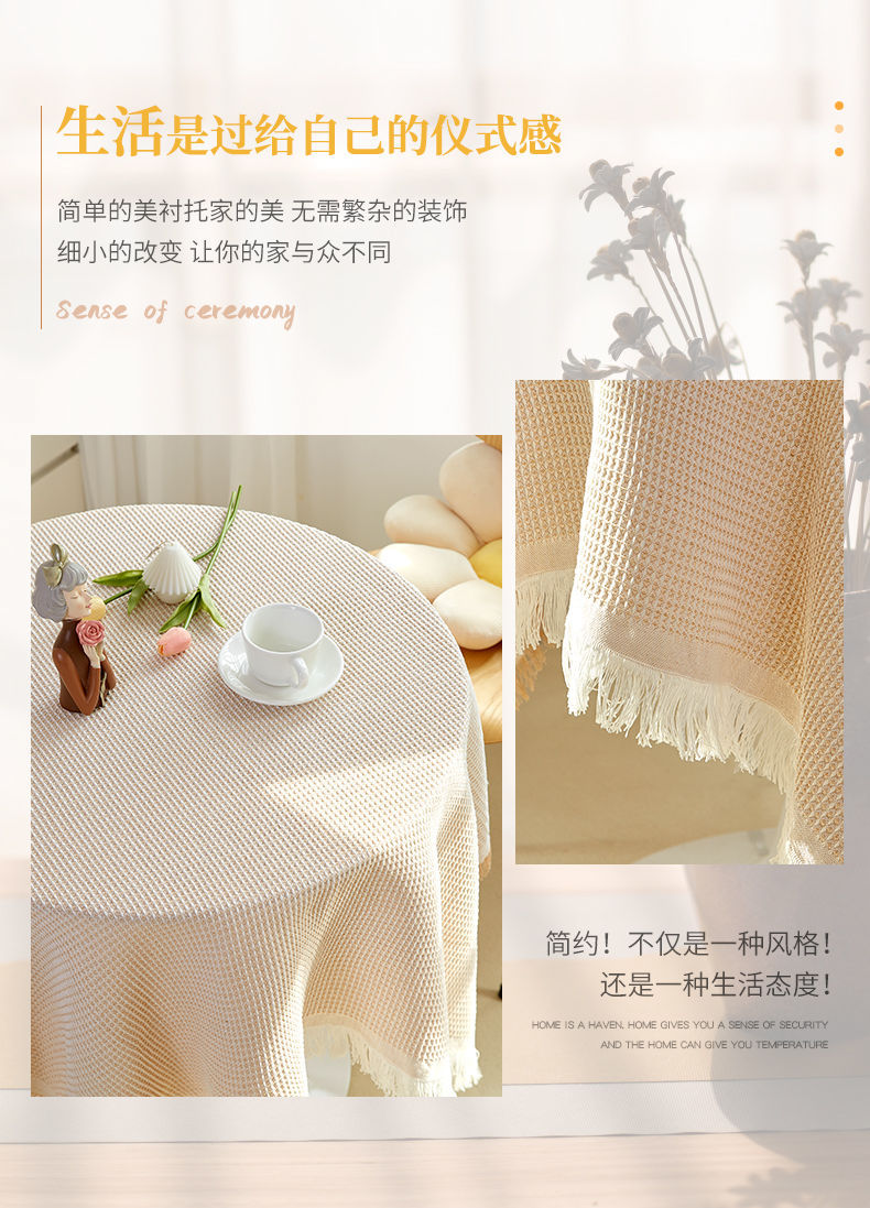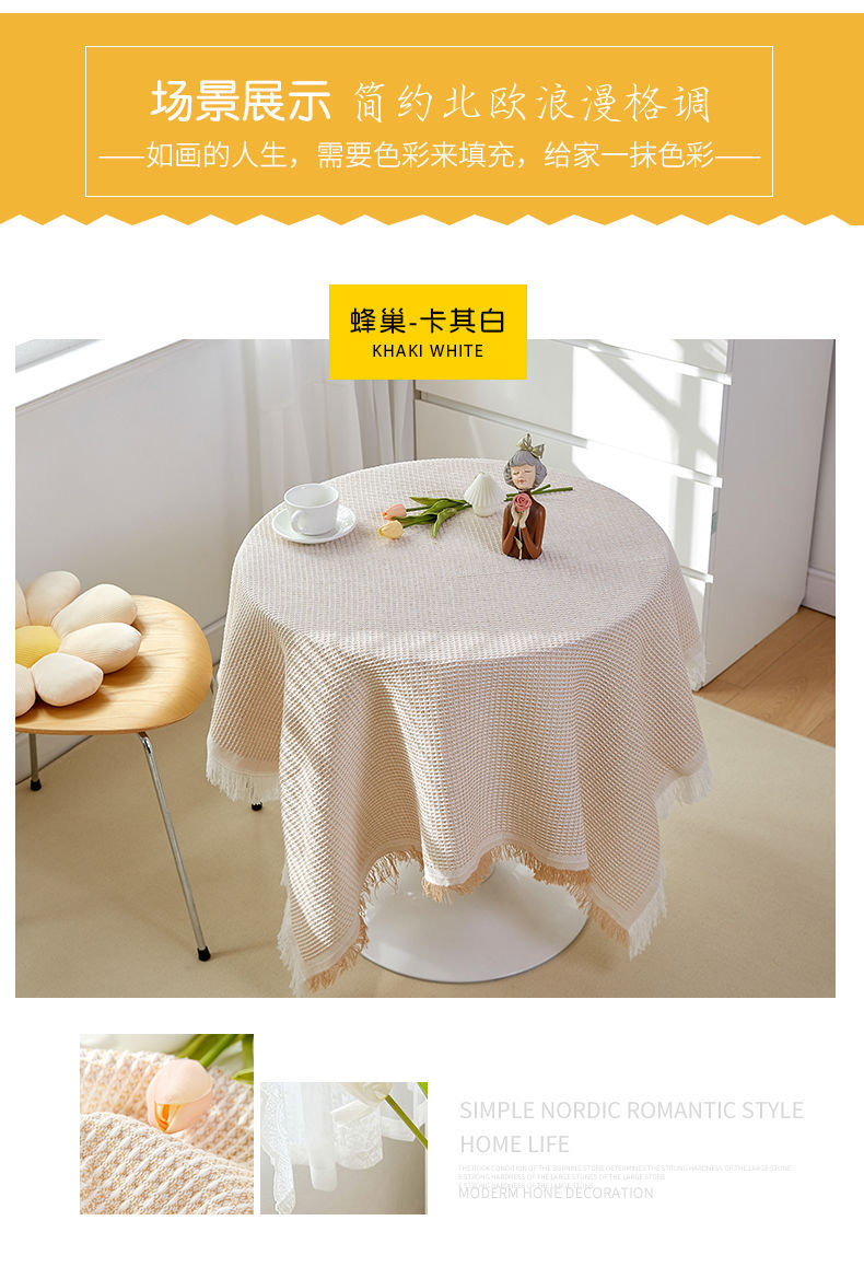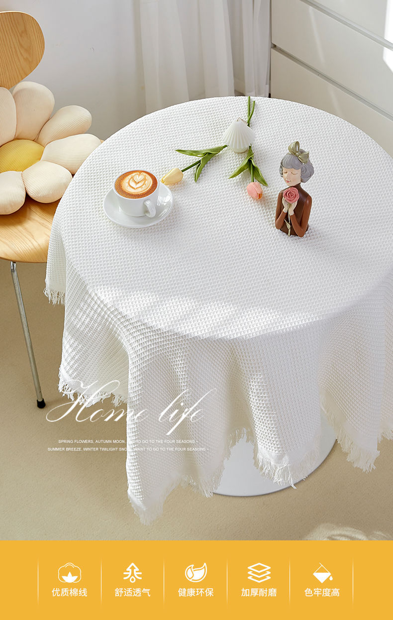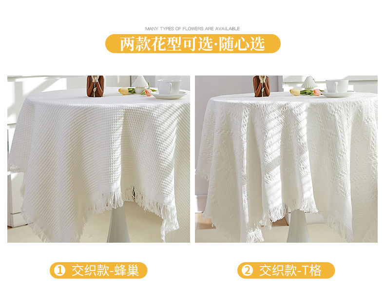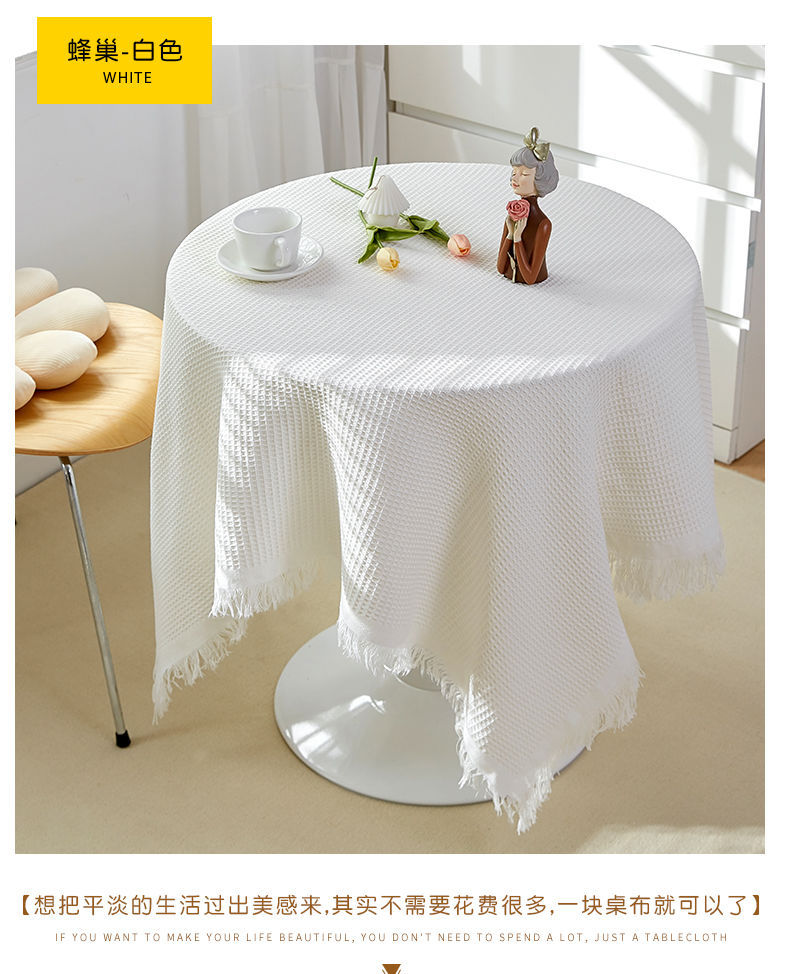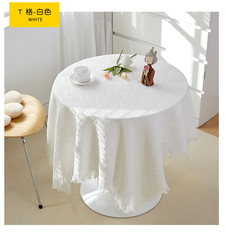 标题:法式桌布日式ins棉麻白色高级感轻奢茶几圆桌台布床头柜书桌方桌