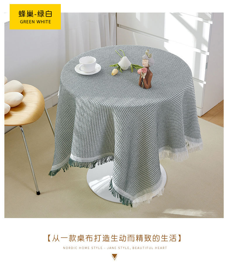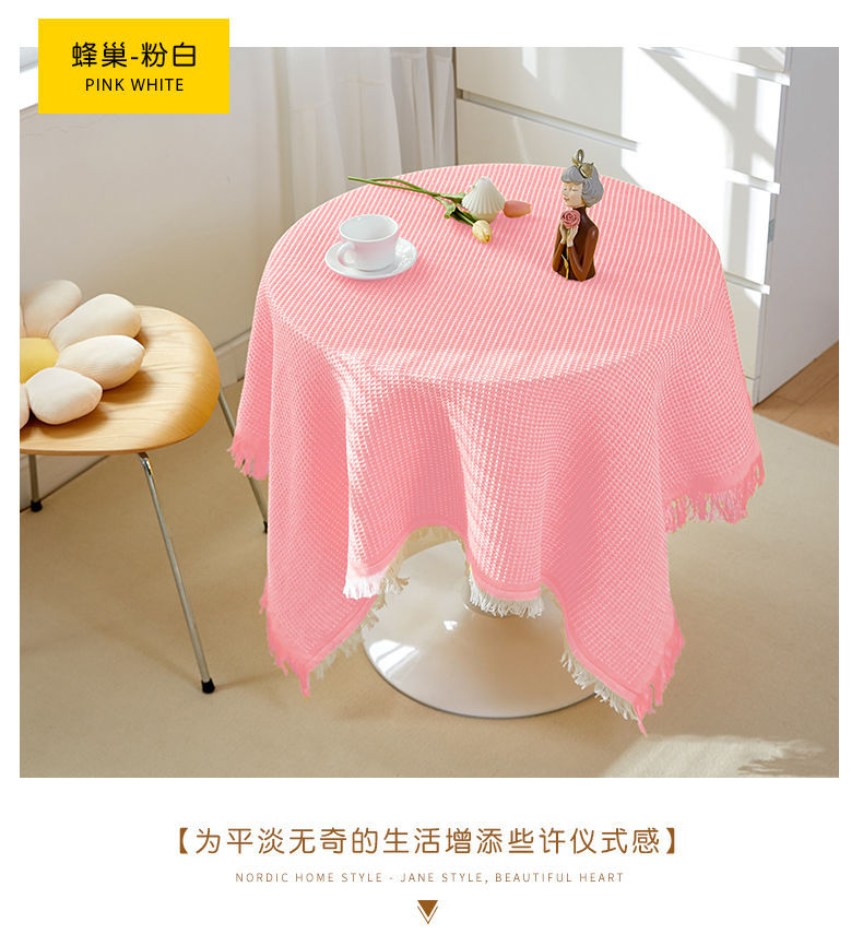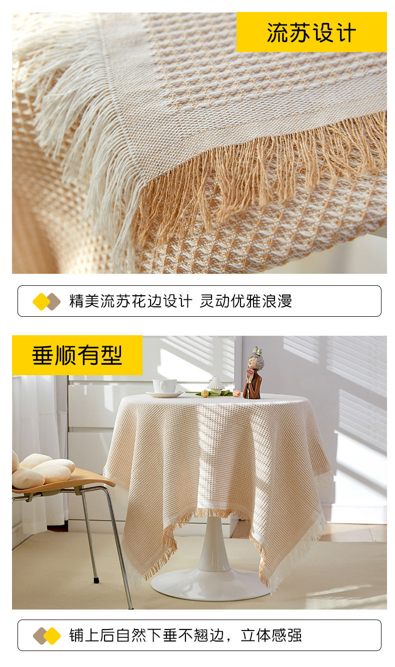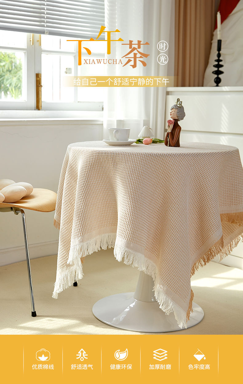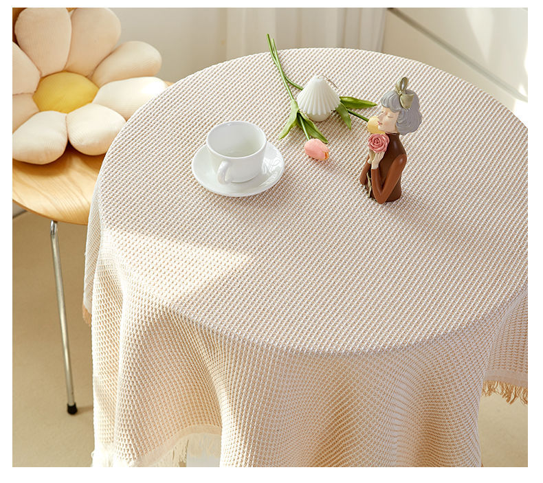 标题:法式桌布日式ins棉麻白色高级感轻奢茶几圆桌台布床头柜书桌方桌