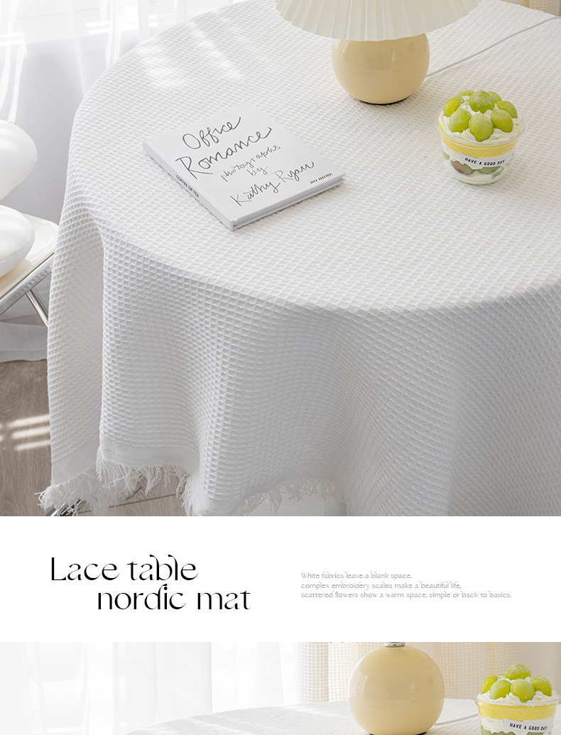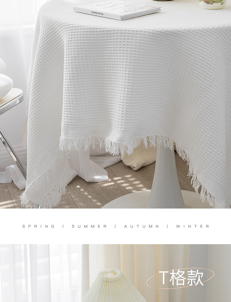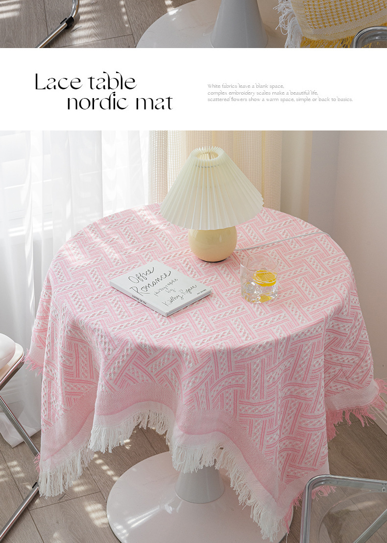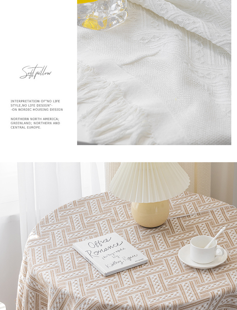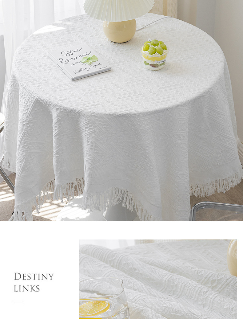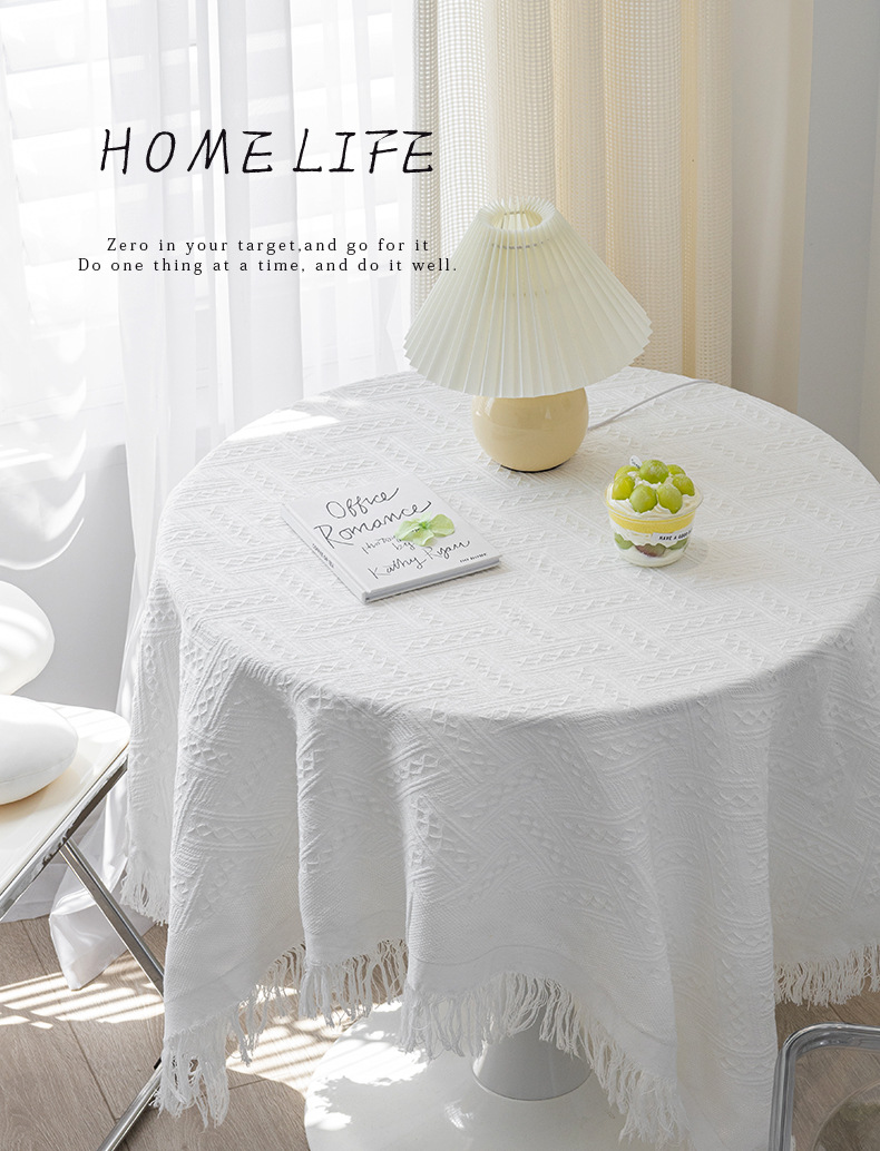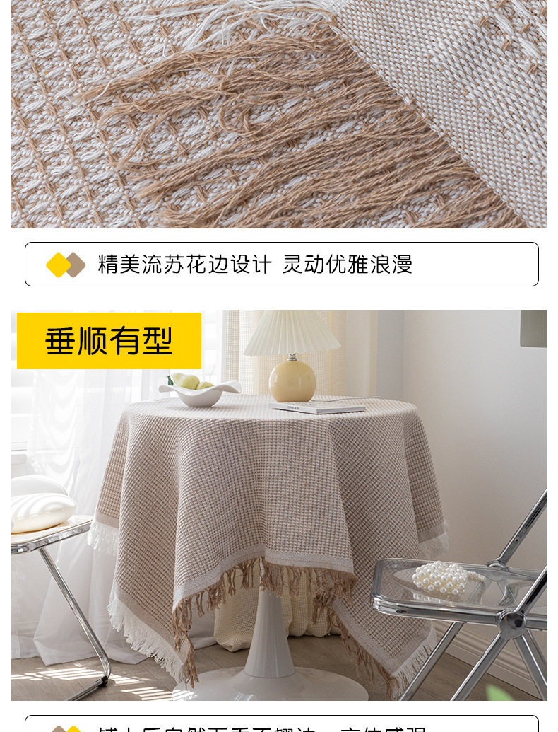 标题:日韩小圆桌棉麻桌布轻奢生日茶几布民宿流苏桌布装饰家用桌垫批发