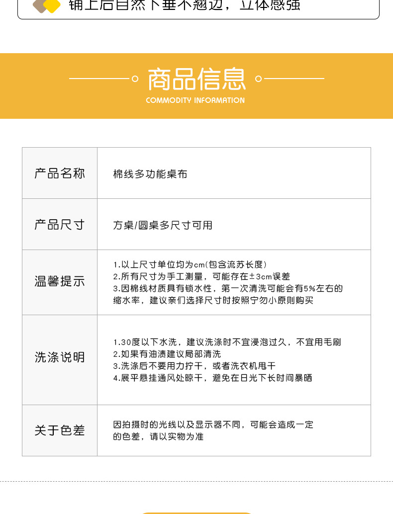 属性:90*90(适圆桌/方桌),90*150,130*130(适合圆桌/方桌),90*180,180*180(适合圆桌/方桌),90*210,90*240,130*180,180*230,180*260,180*300,180*340,230*250,230*275,230*340