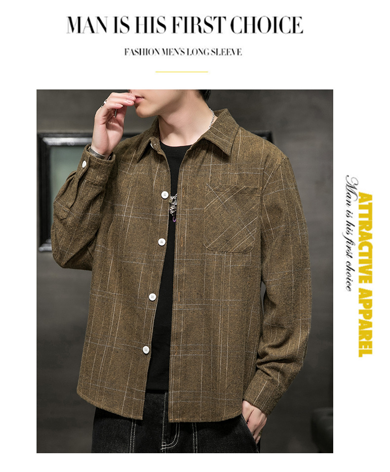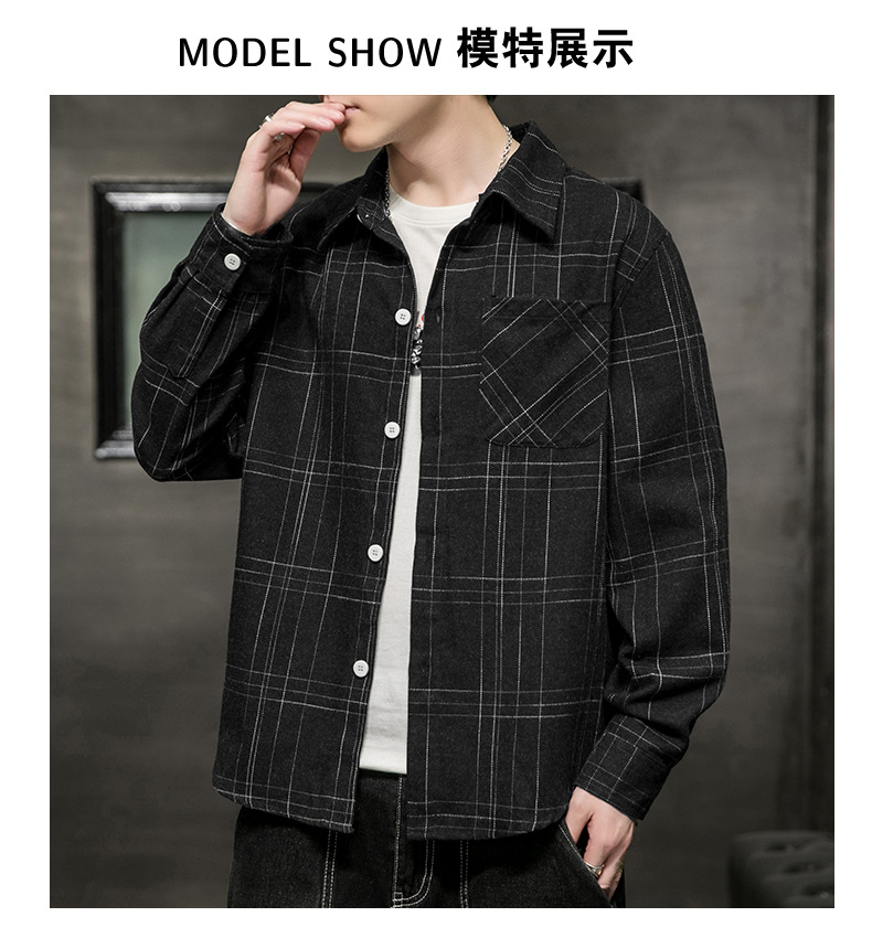 标题:衬衫男士2022格子长袖韩版潮流帅气秋季新款休闲装上衣衬衣外套男