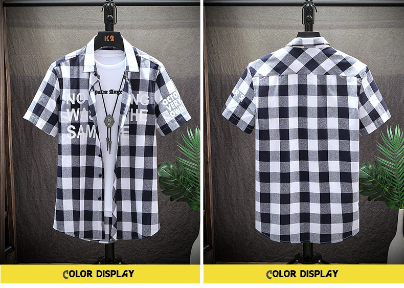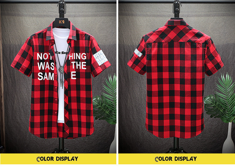 描述:货源类别:现货,品牌:万山万水服装厂,货号:DOBI,风格:韩版,淘货类别:青春流行(18-24岁),款式:开衫,版型:宽松型,领型:翻领,袖长:短袖,图案:格子,厚薄:薄款,误差范围:1-3CM,是否库存:是,库存类型:整单,款式细节:辑明线,适合人群:青少年,上市年份/季节:2022年夏季,面料名称:棉,主面料成分:棉,主面料成分的含量:56.8,面料:棉,适用场景:休闲,适合季节:夏季,工艺:免烫处理,颜色:CS800红格,CS800藏青格,CS181蓝格,CS181灰格,CS181白格,CS181红格,尺码:M,L,XL,XXL,XXXL,XXXXL,5XL,主要下游平台:ebay,亚马逊,wish,速卖通,独立站,LAZADA,主要销售地区:非洲,欧洲,南美,东南亚,北美,东北亚,中东,有可授权的自有品牌:否,是否跨境出口专供货源:是,原创设计货源:否,有无质检报告:否,