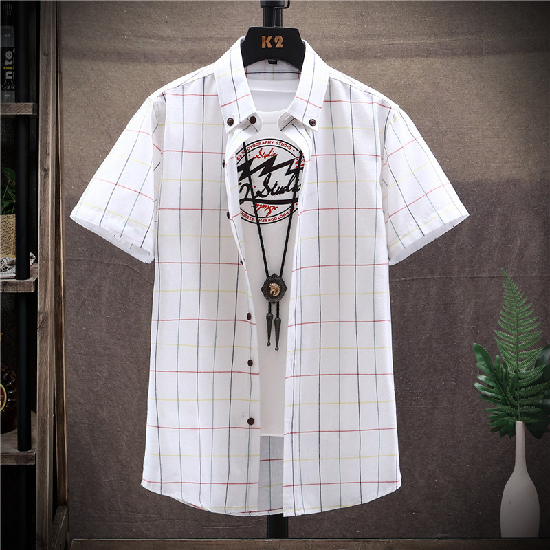 标题:衬衫男短袖夏季格子休闲商务帅气韩版修身潮流男士衬衣半袖寸上衣