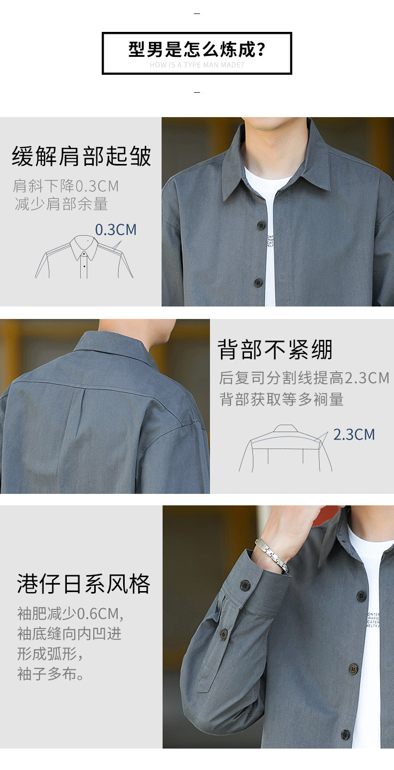 标题:衬衫男士长袖秋季薄款工装外套男生痞帅工作穿休闲打底衬衣上衣服