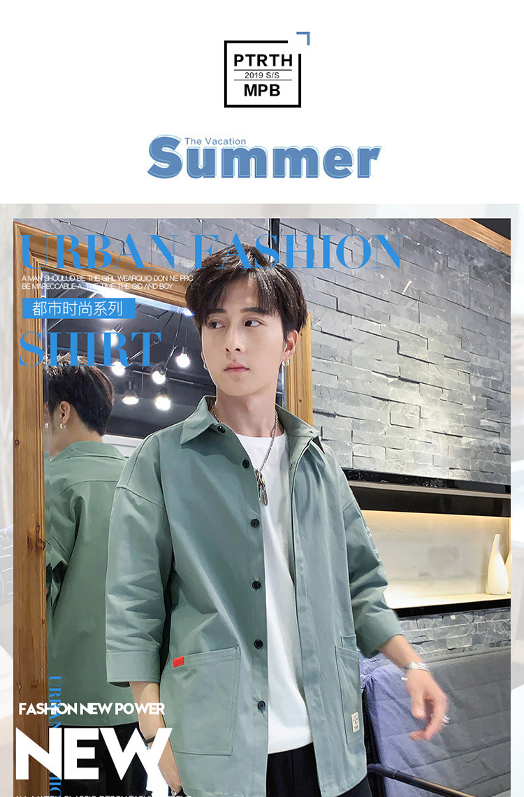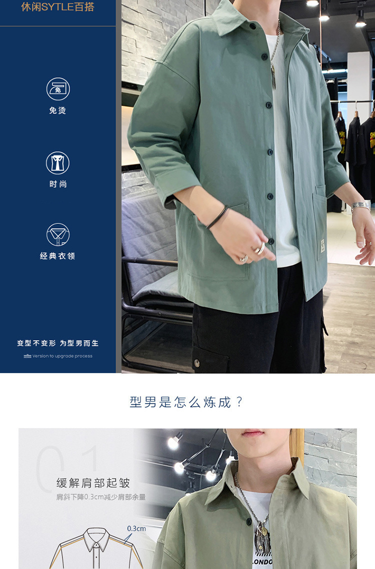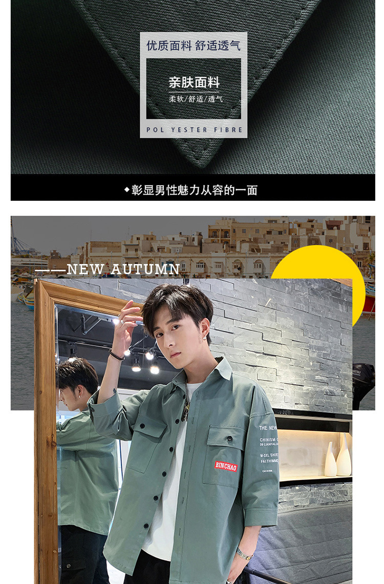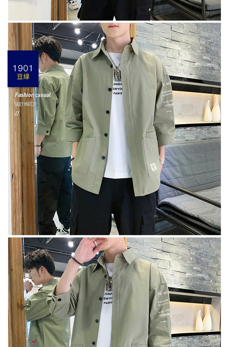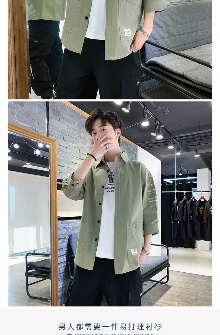 标题:衬衣男士休闲短袖韩版潮流帅气寸衫宽松夏季7七分袖衬衫工装外套F