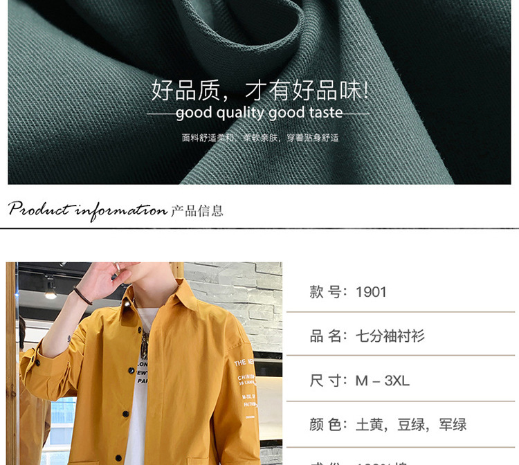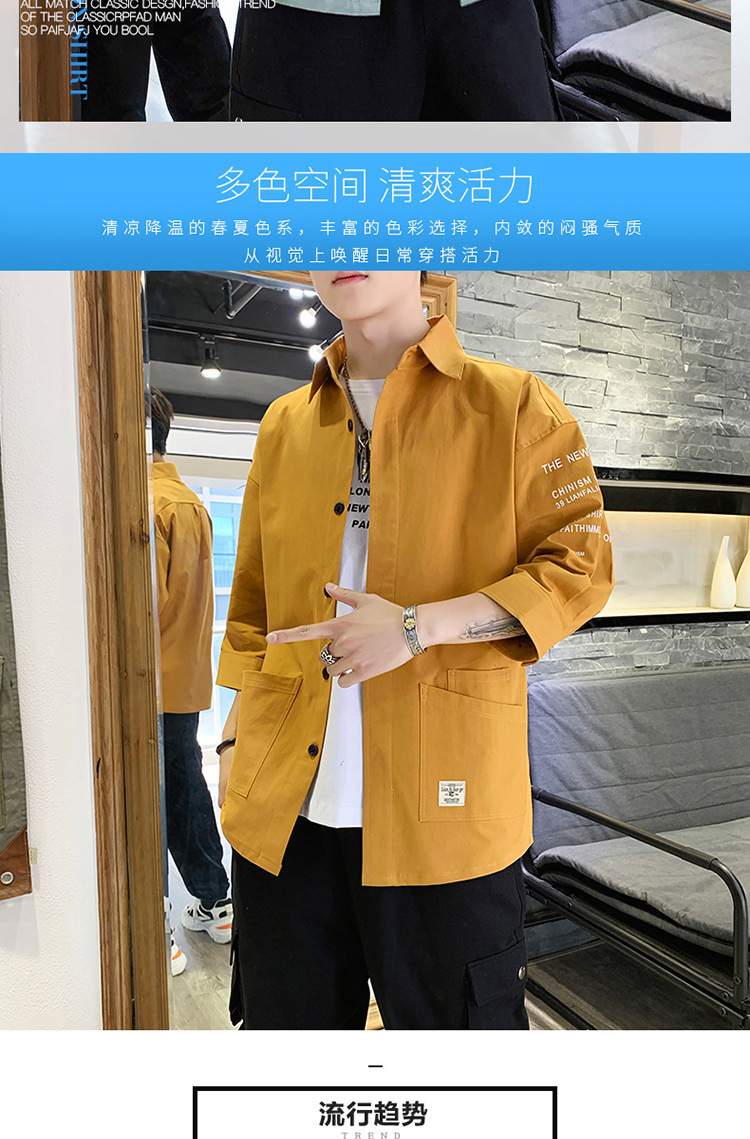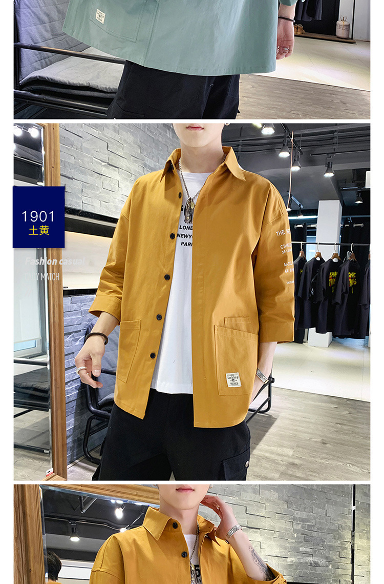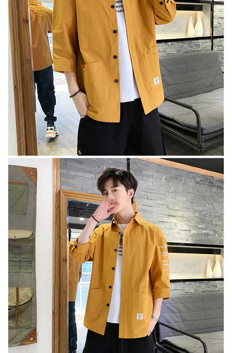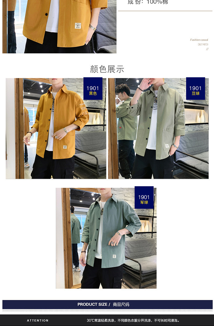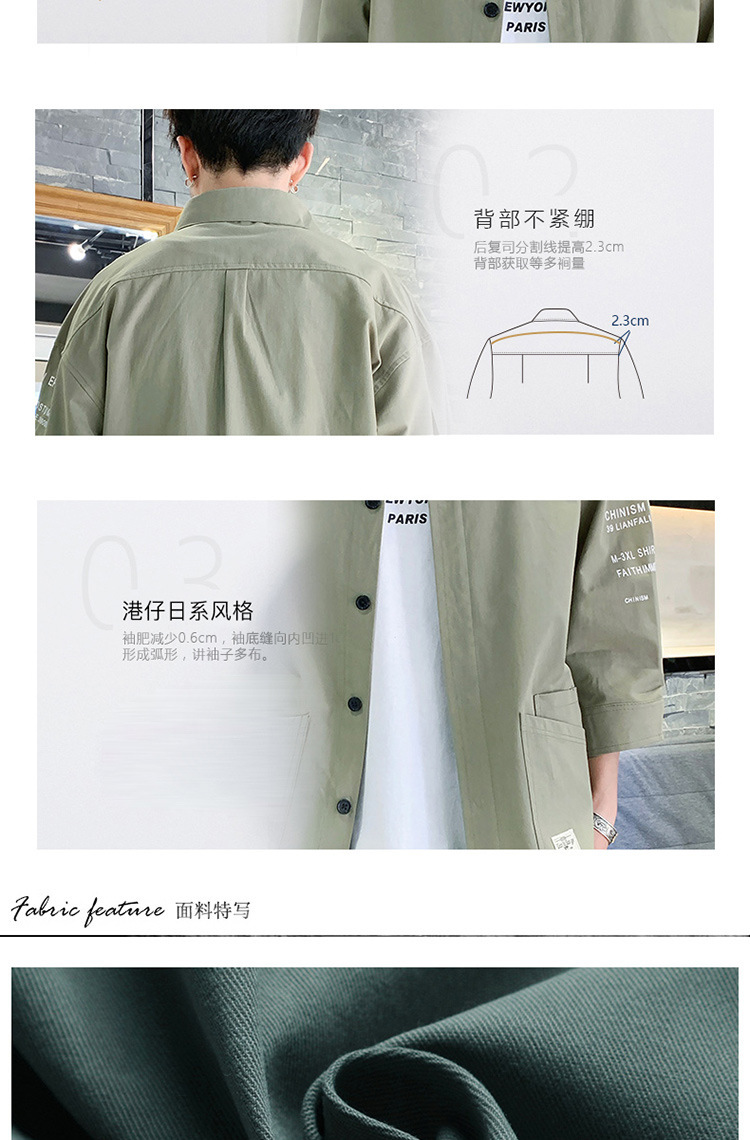 标题:衬衣男士休闲短袖韩版潮流帅气寸衫宽松夏季7七分袖衬衫工装外套F