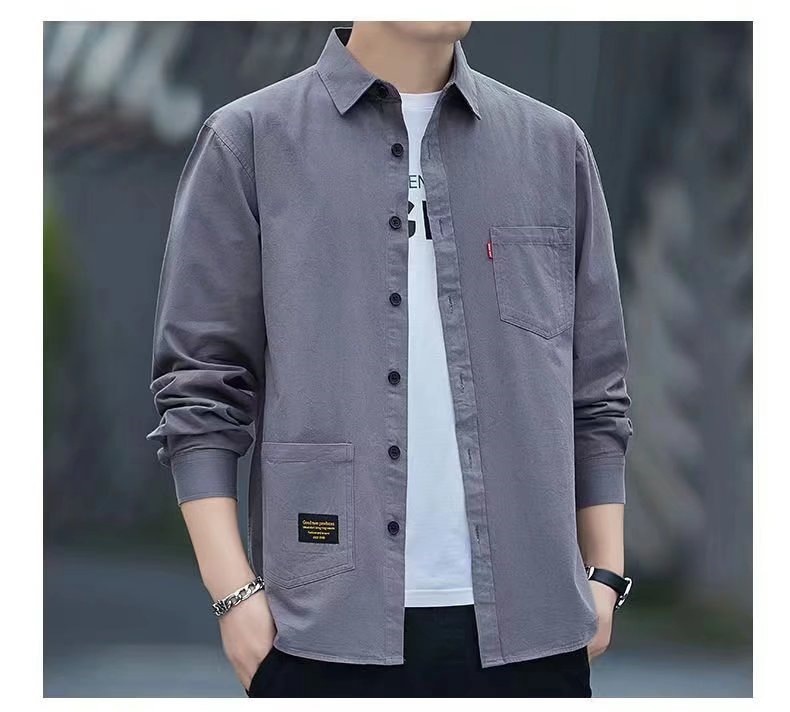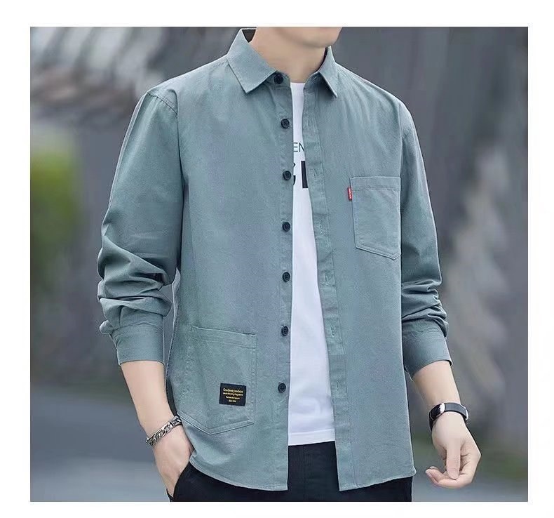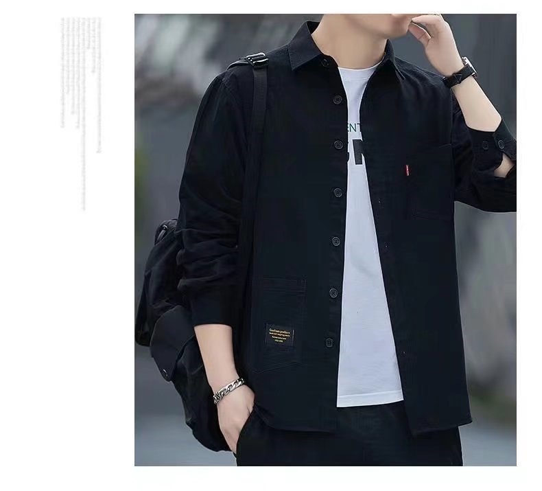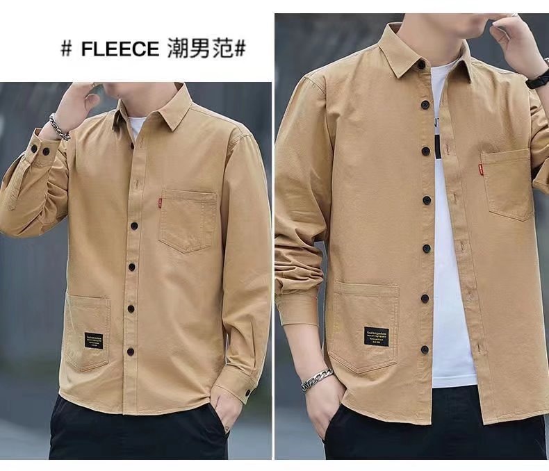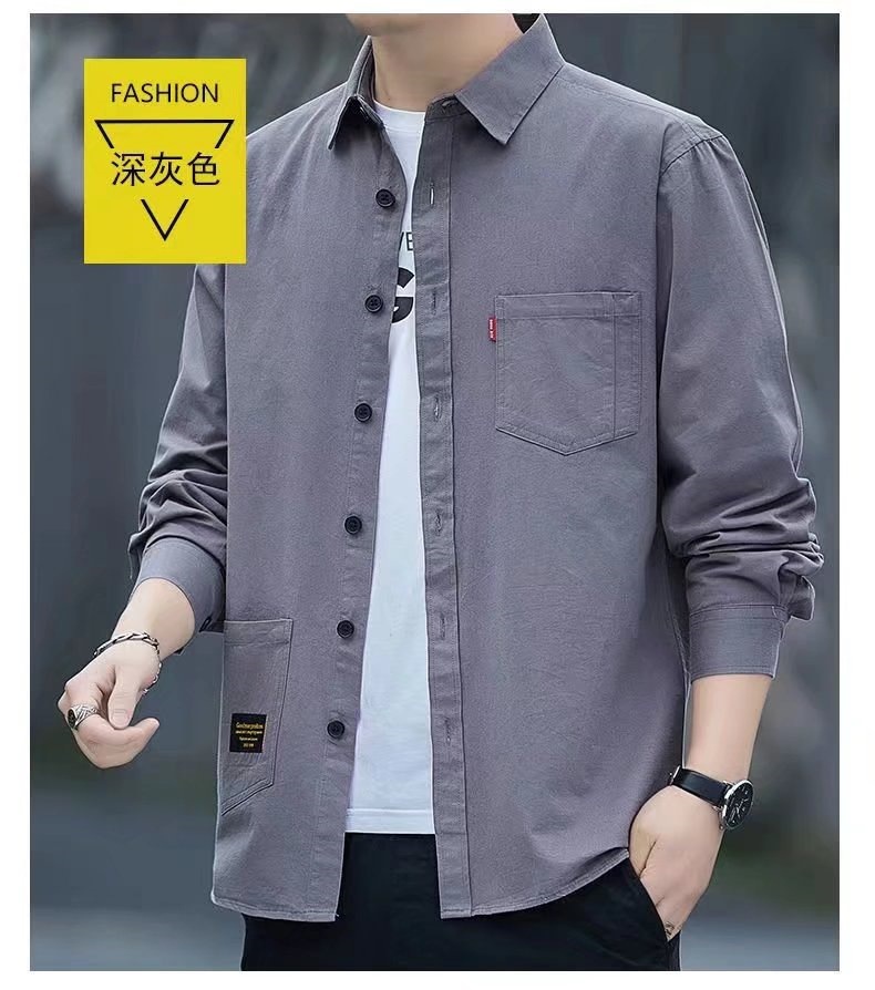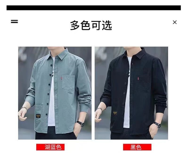 标题:新款宽松休闲男士长袖衬衫复古日系衬衫外套男春夏款大码百搭衬衣