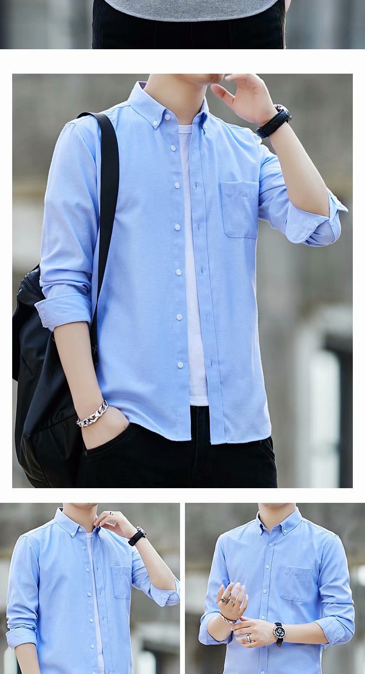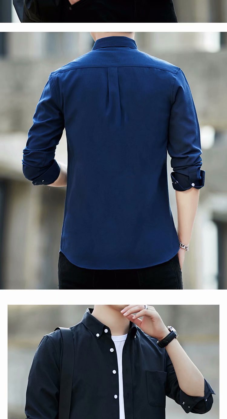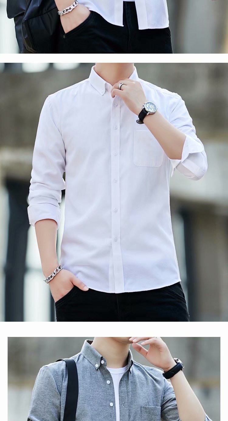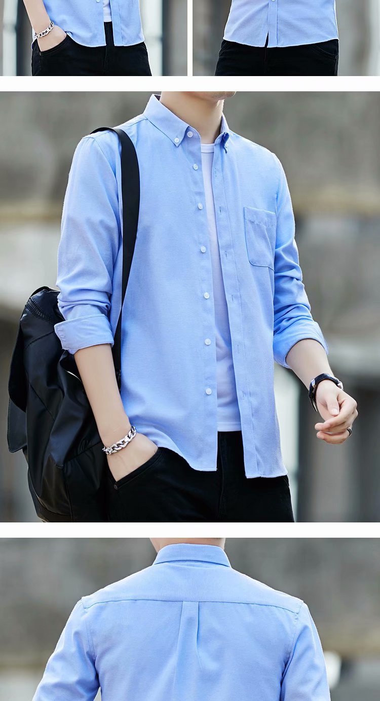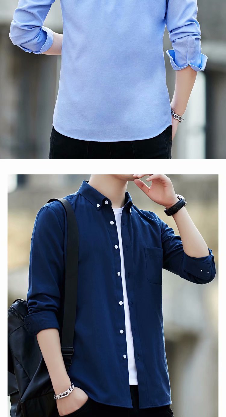 标题:2021新款男士长袖衬衫 男装牛津纺休闲衬衣 男士修身韩版纯色衬衫