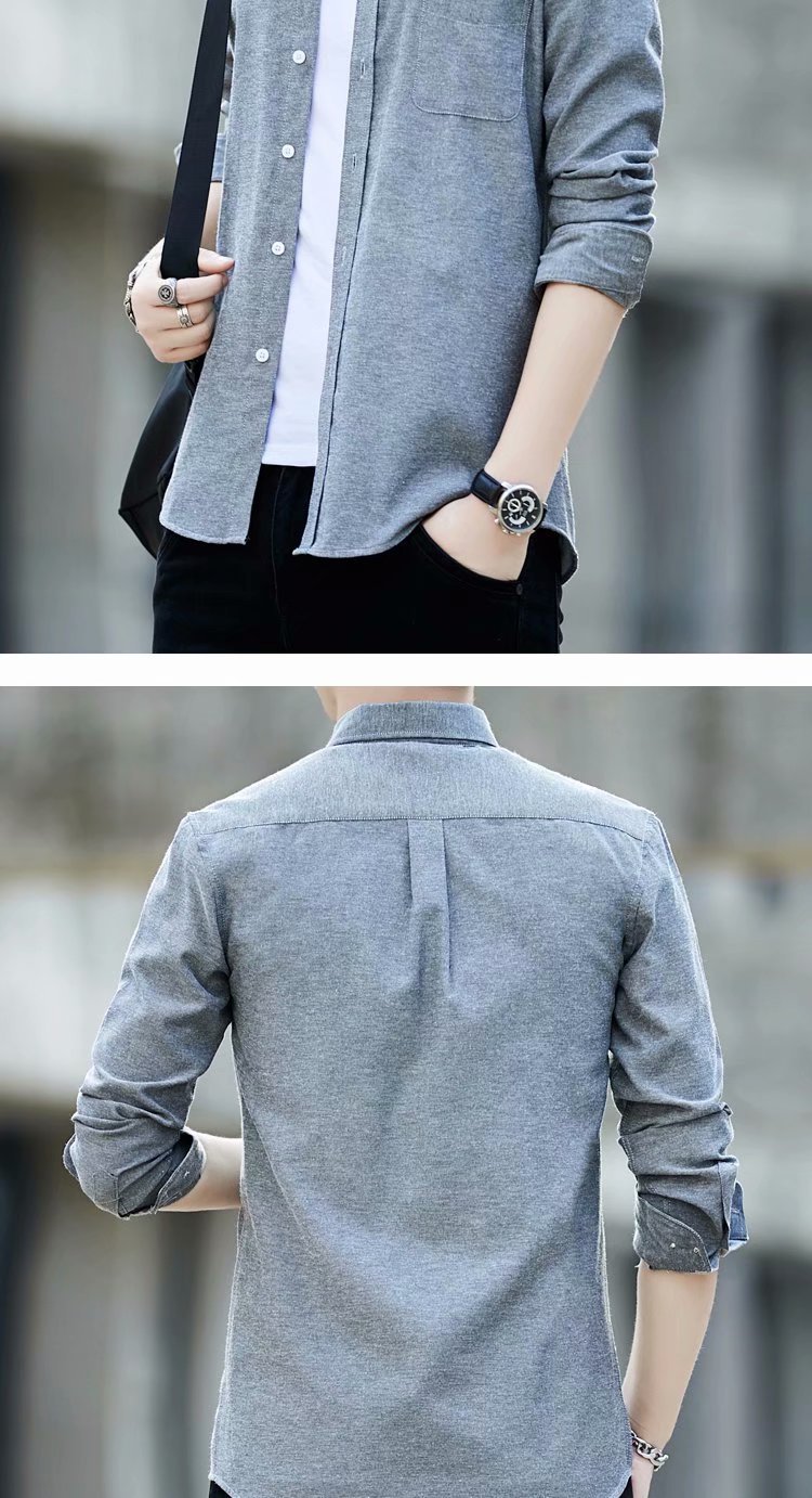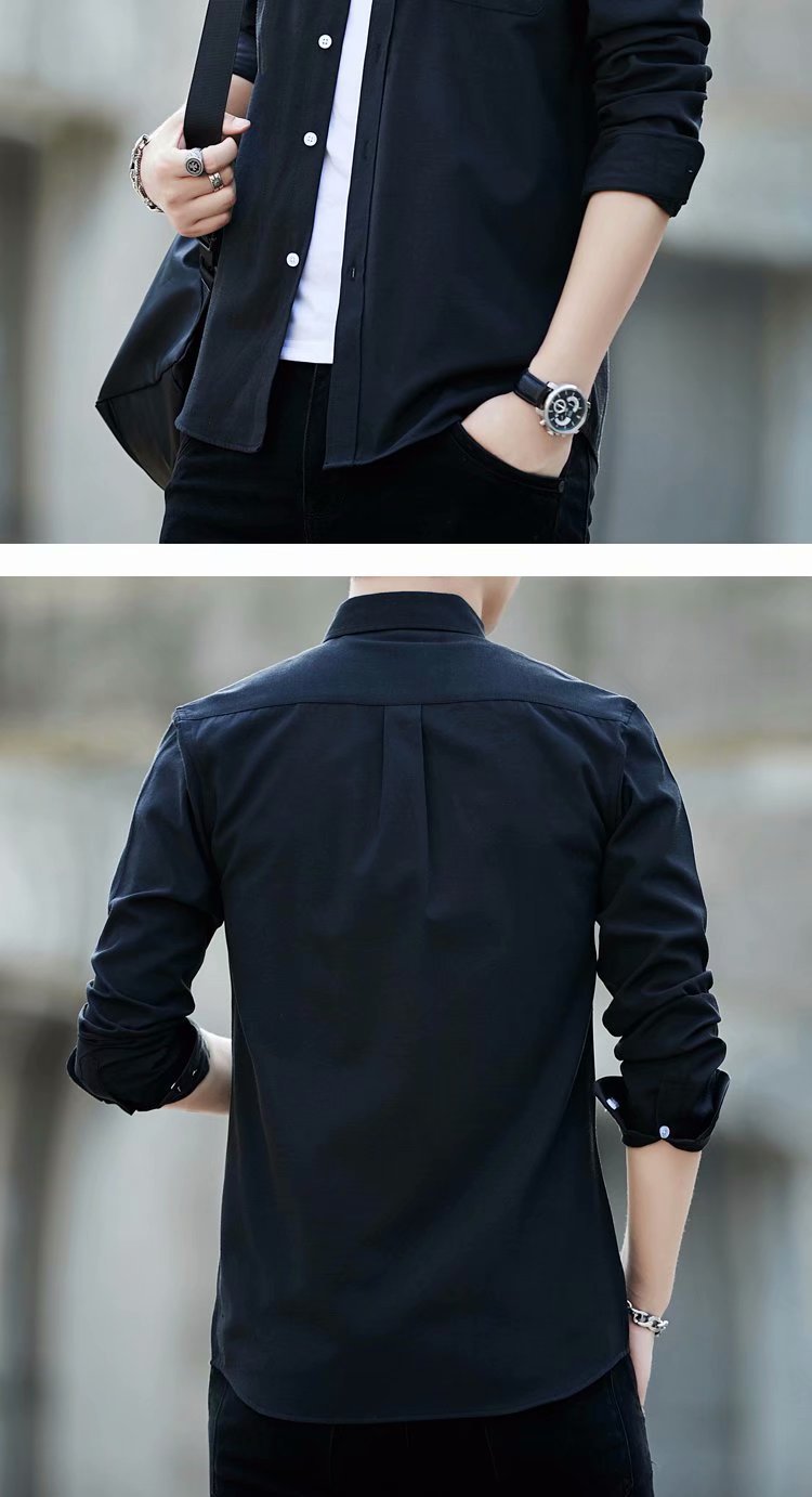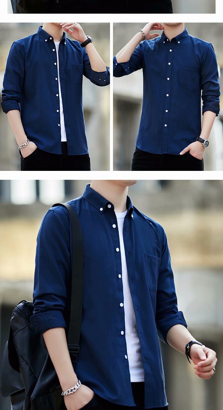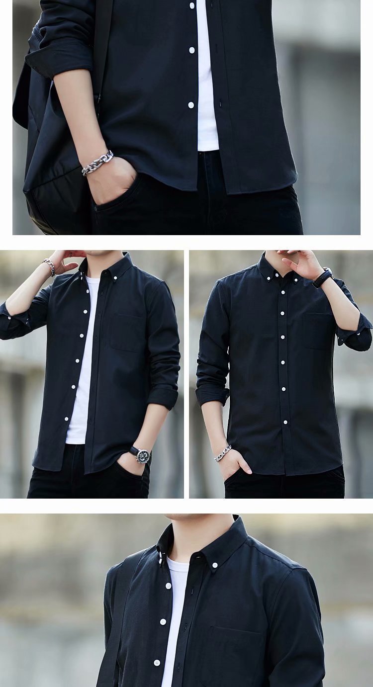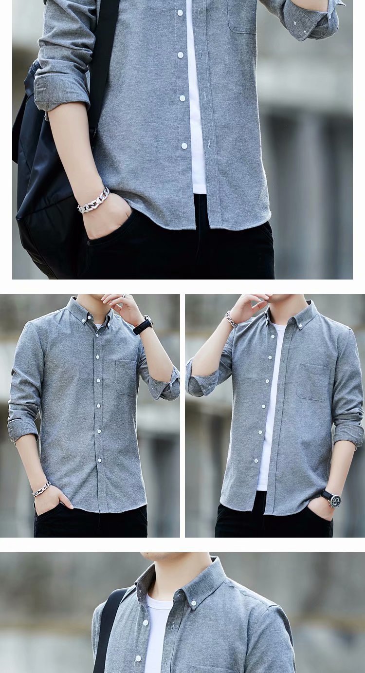 标题:2021新款男士长袖衬衫 男装牛津纺休闲衬衣 男士修身韩版纯色衬衫