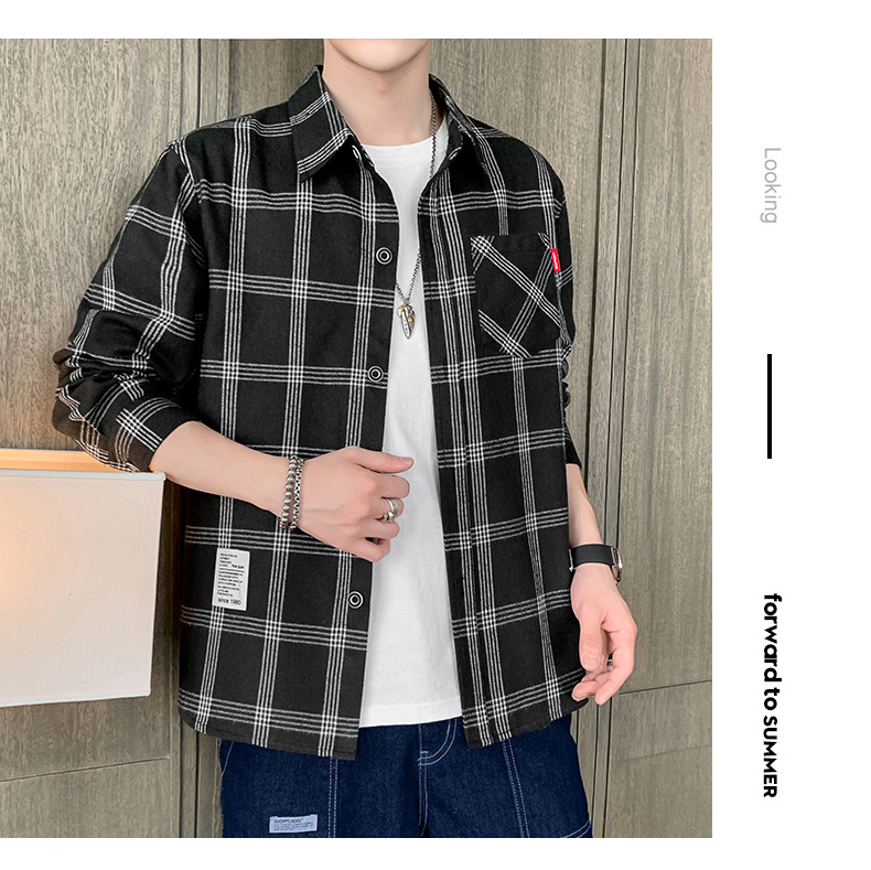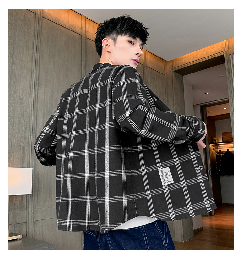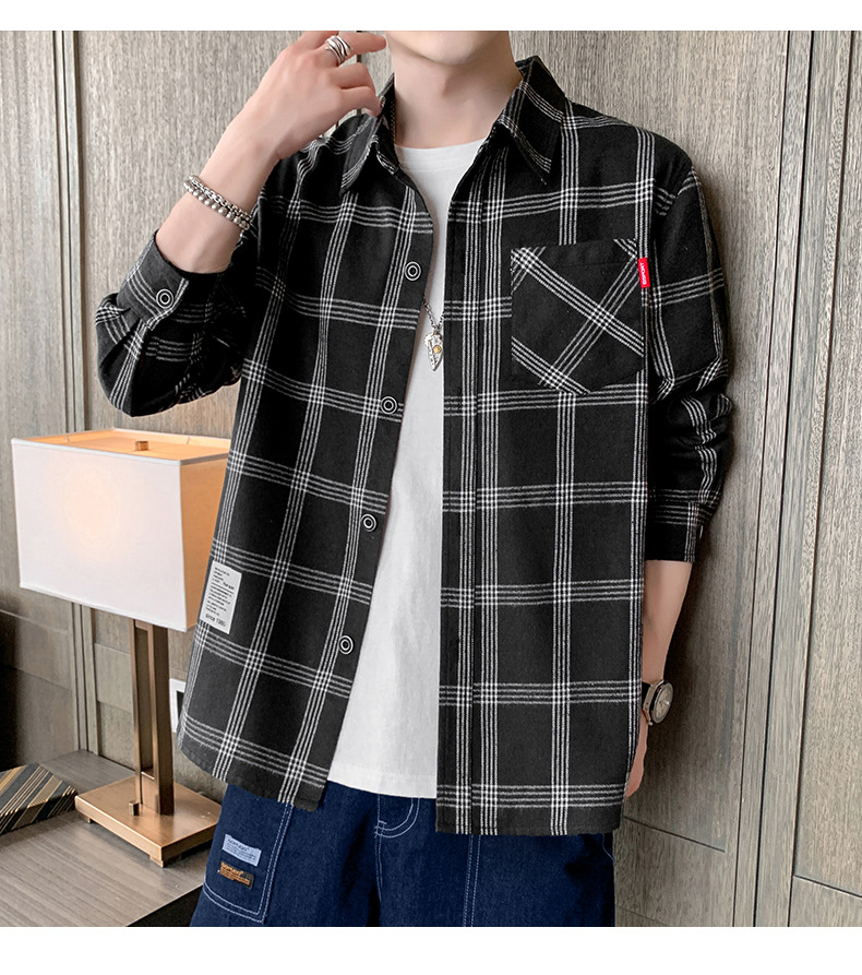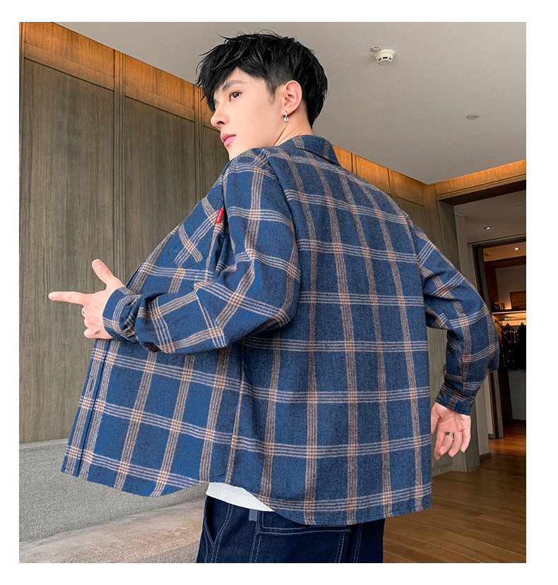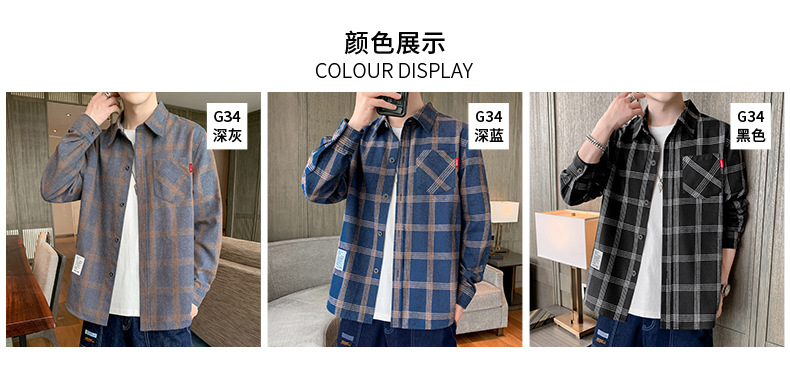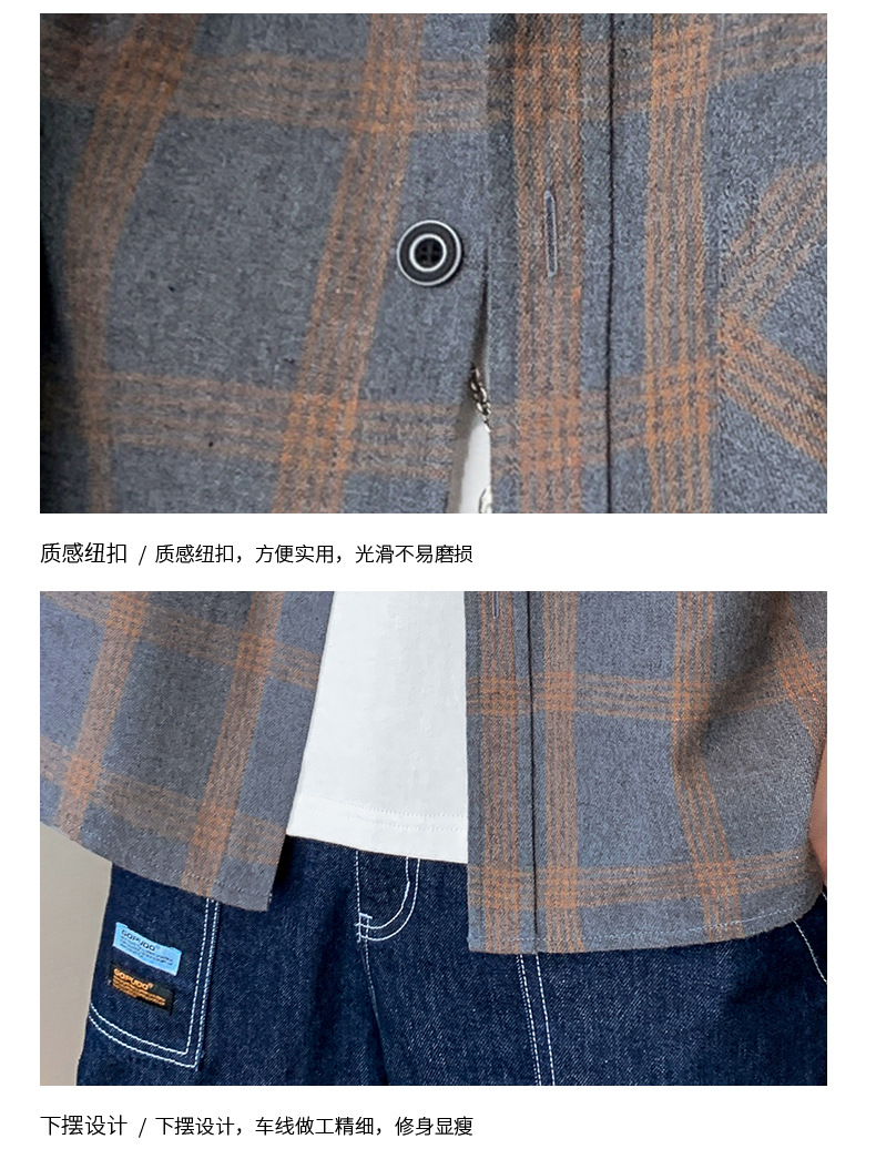 标题:2022秋季新品复古色开衫条纹男士长袖衬衫绒面触感翻领修身外套男