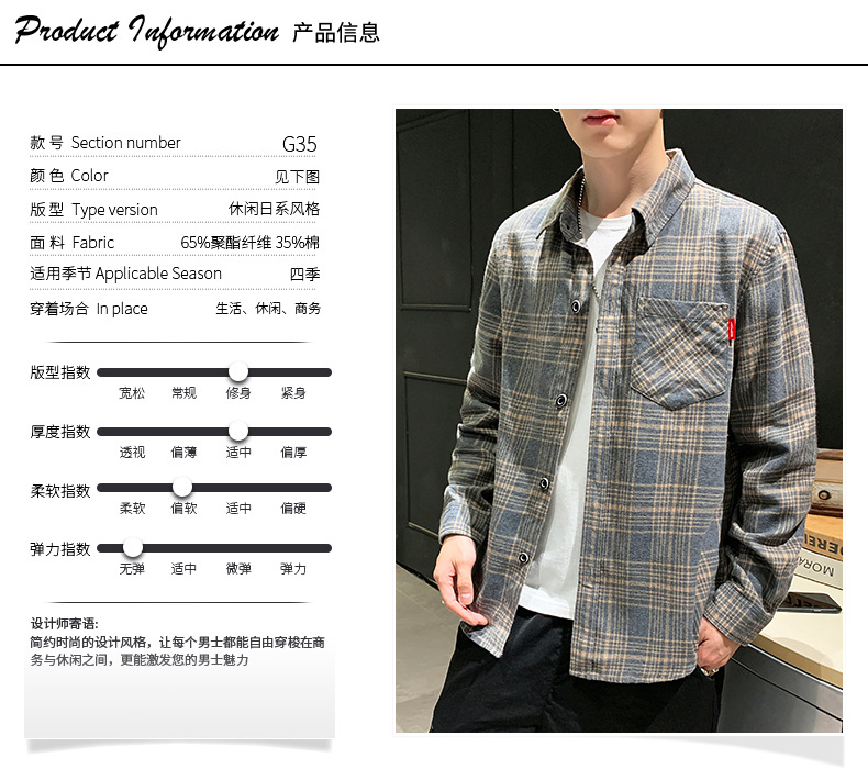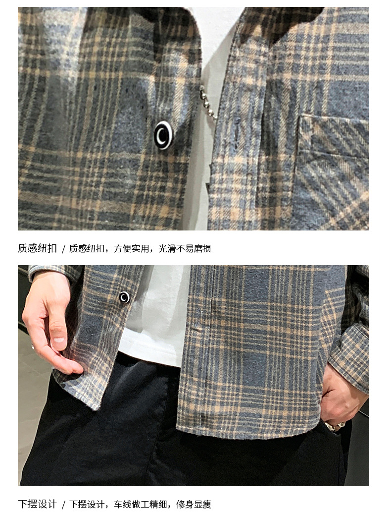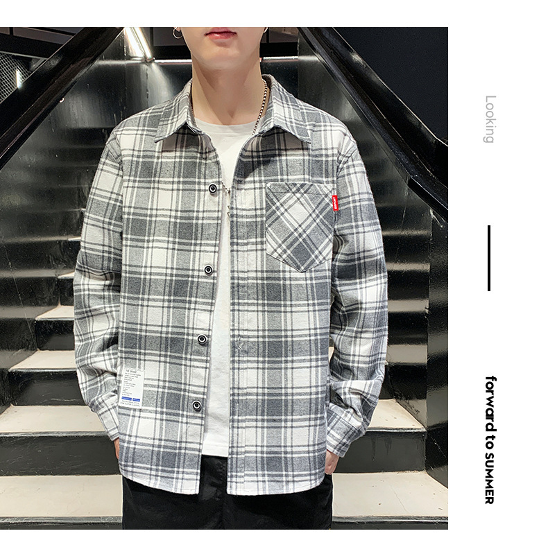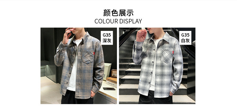 描述:货源类别:现货,品牌:鸣佐,货号:JC-G35,风格:韩版,淘货类别:青春流行(18-24岁),款式:开衫,版型:宽松型,领型:翻领,袖长:长袖,图案:格子,厚薄:普通,误差范围:1-3,是否库存:是,库存类型:整单,款式细节:口袋装饰,适合人群:青少年,上市年份/季节:2021年秋季,面料名称:棉类混纺,主面料成分:聚酯纤维(涤纶),主面料成分的含量:65,面料:棉麻,适用场景:休闲,适合季节:春秋季,工艺:免烫处理,颜色:白灰,深灰,G36黑色,G36蓝色,尺码:M,L,XL,XXL,3XL,4XL,主要下游平台:ebay,亚马逊,wish,速卖通,独立站,LAZADA,主要销售地区:非洲,欧洲,南美,东南亚,北美,东北亚,中东,是否跨境出口专供货源:是,原创设计货源:否,有无质检报告:否,