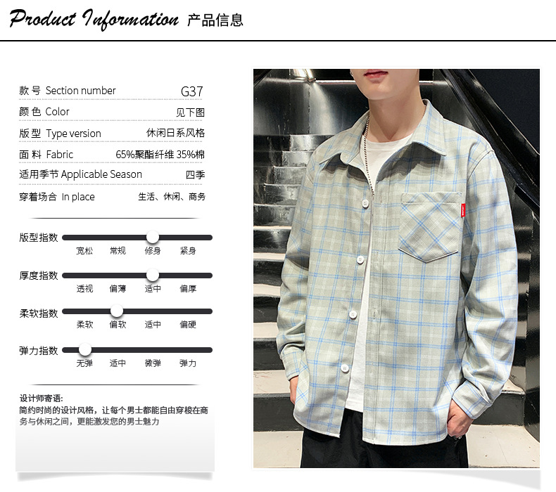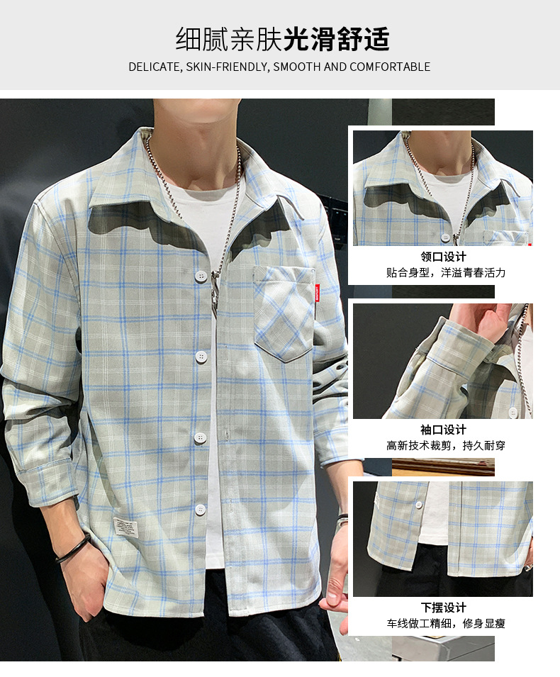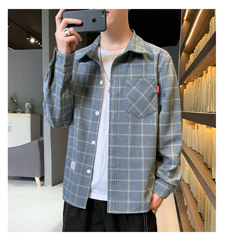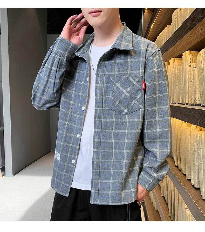 描述:货源类别:现货,品牌:鸣佐,货号:JC-G37,风格:韩版,淘货类别:青春流行(18-24岁),款式:开衫,版型:宽松型,领型:翻领,袖长:长袖,图案:格子,厚薄:普通,误差范围:1-3,是否库存:是,库存类型:整单,款式细节:口袋装饰,适合人群:青少年,上市年份/季节:2021年秋季,面料名称:棉类混纺,主面料成分:聚酯纤维(涤纶),主面料成分的含量:65,面料:棉麻,适用场景:休闲,适合季节:春秋季,工艺:免烫处理,颜色:深灰,浅灰,尺码:M,L,XL,XXL,3XL,4XL,主要下游平台:ebay,亚马逊,wish,速卖通,独立站,LAZADA,主要销售地区:非洲,欧洲,南美,东南亚,北美,东北亚,中东,是否跨境出口专供货源:是,原创设计货源:否,有无质检报告:否,