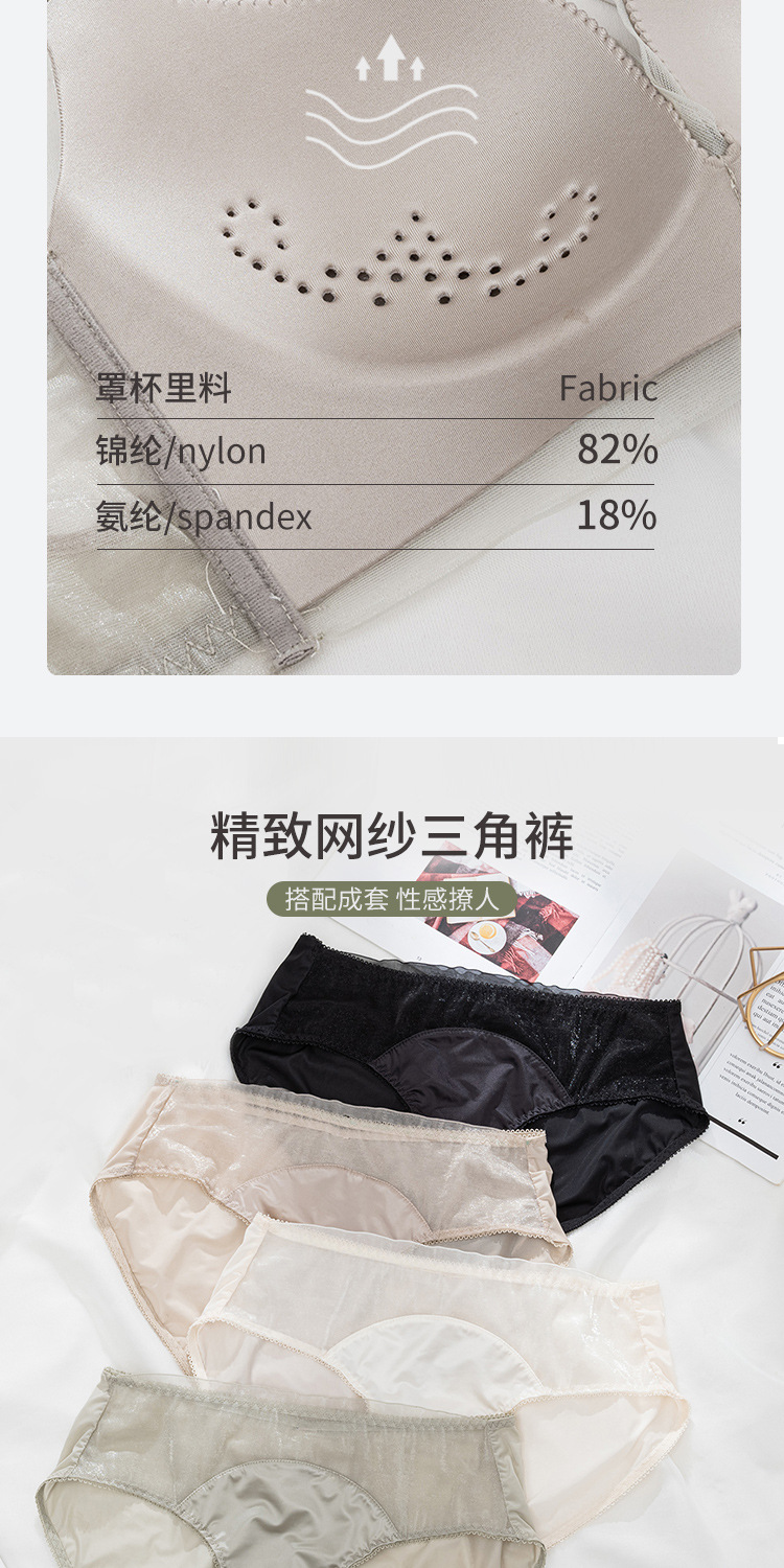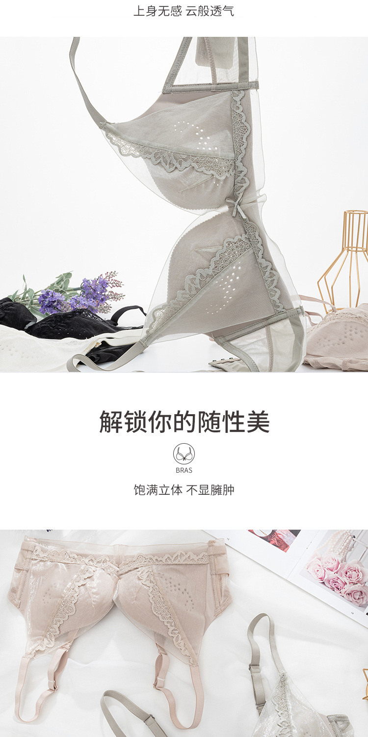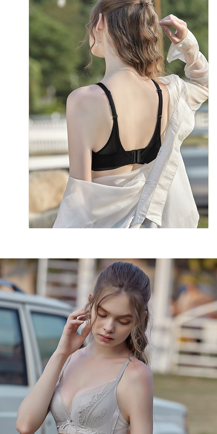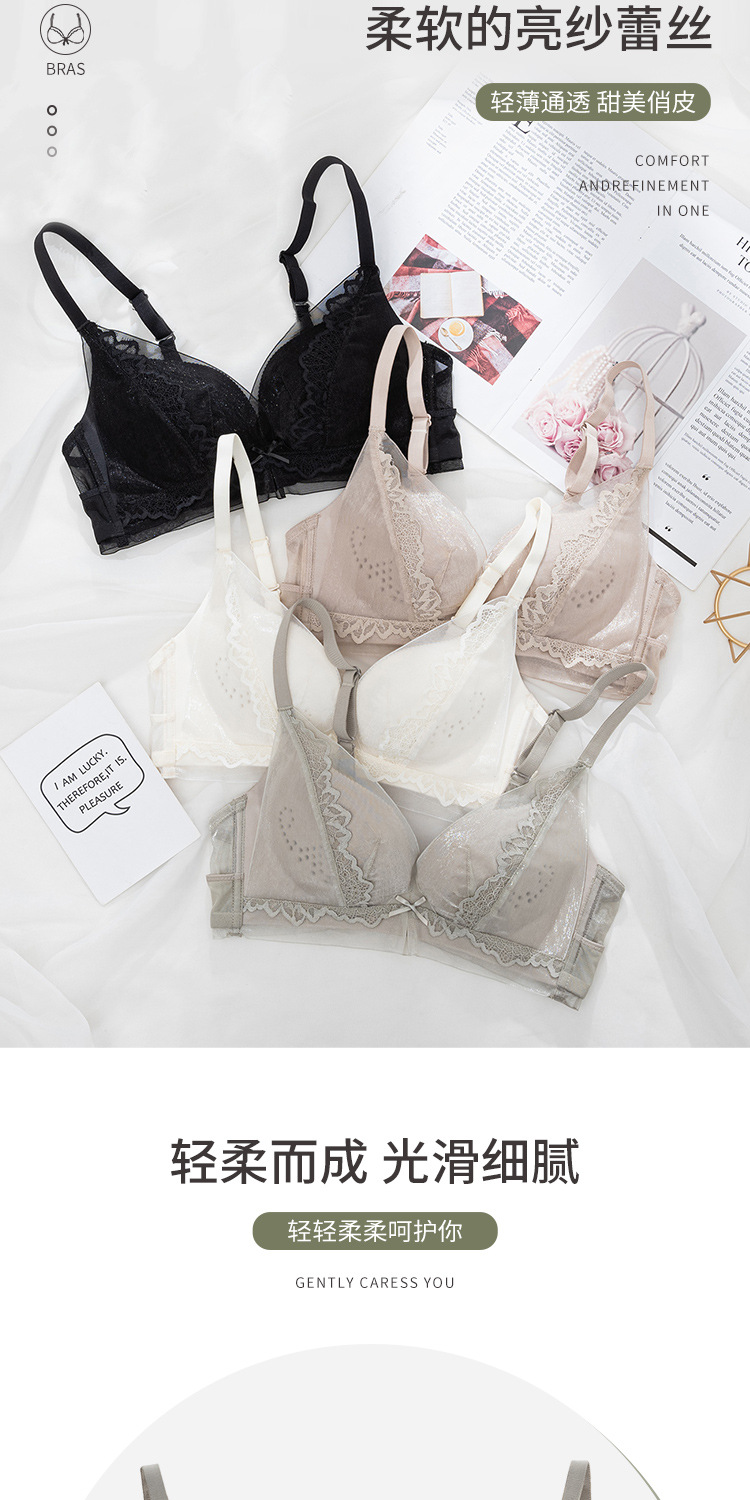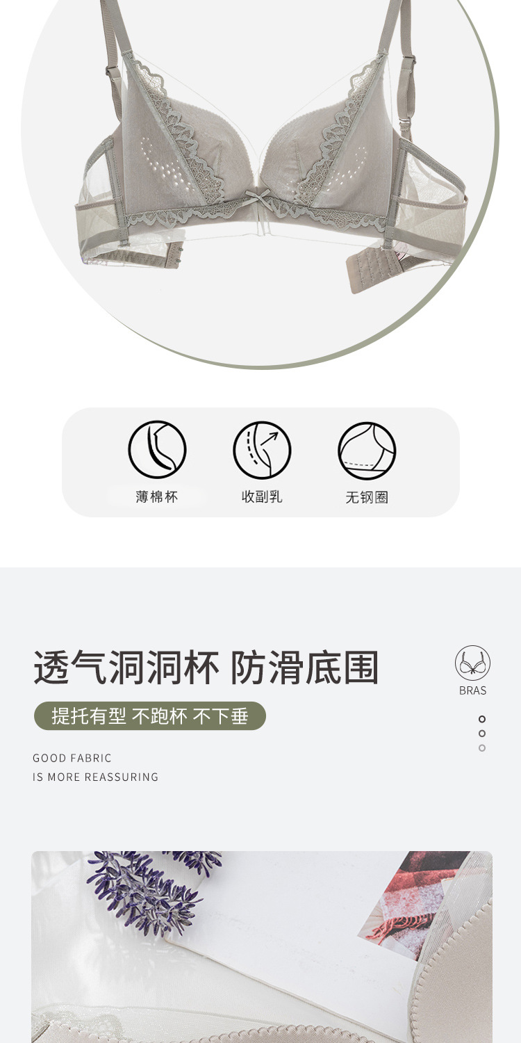 标题:2022春夏蕾丝文胸女士无钢圈聚拢胸罩侧收防下垂文胸光面洞洞薄杯