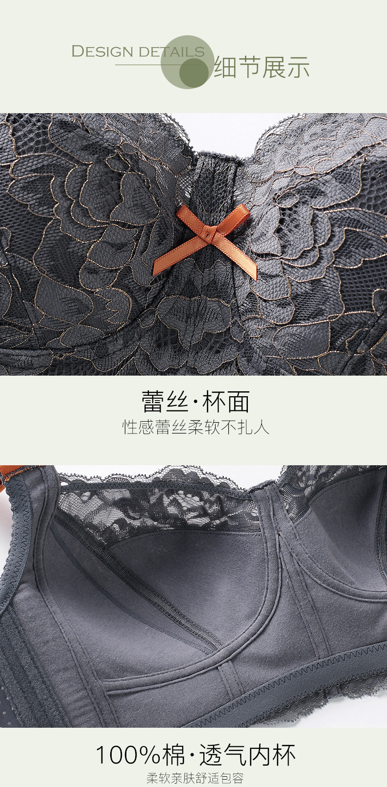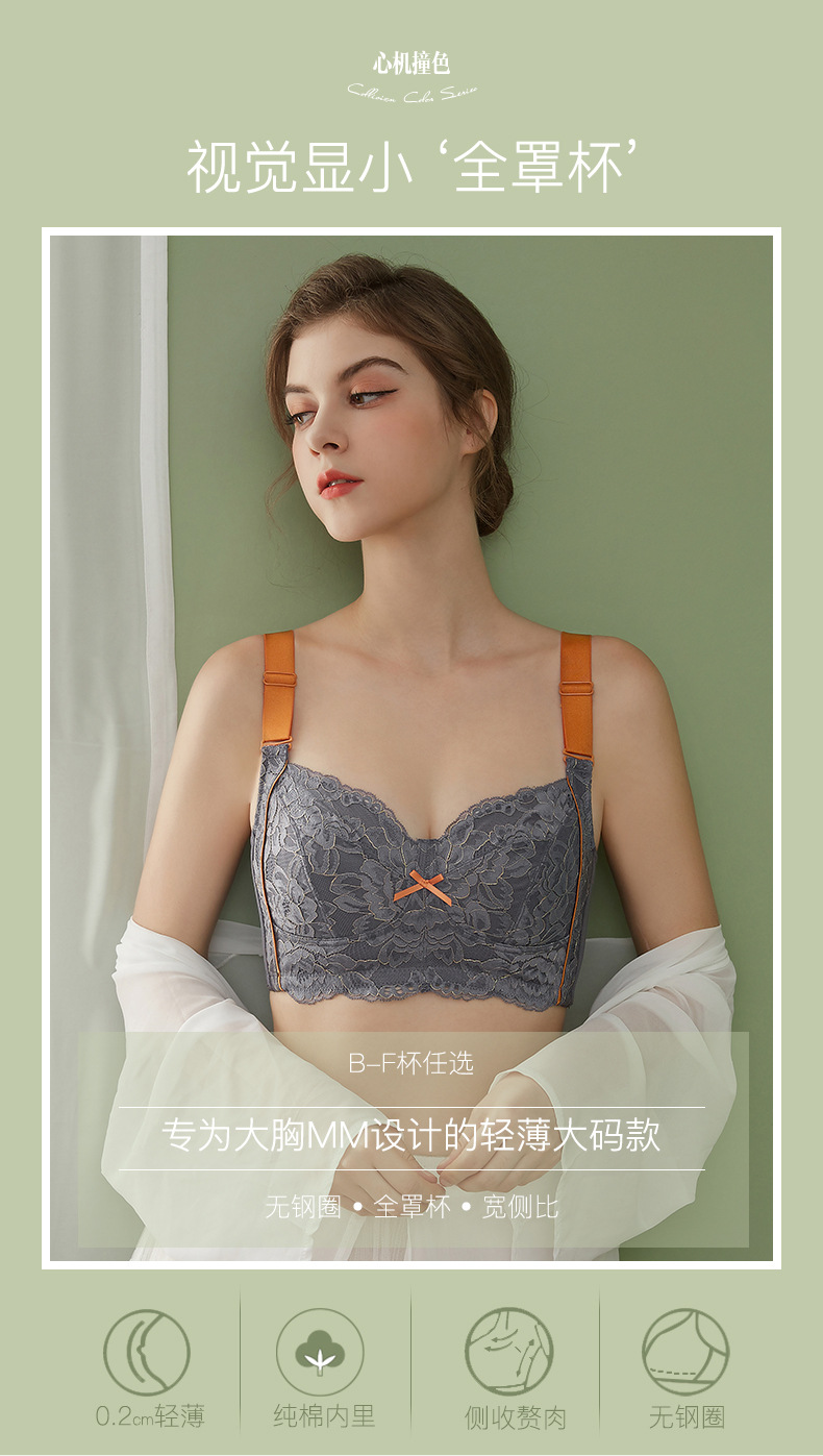 标题:大胸显小文胸薄款无钢圈聚拢内衣女士大码收副乳调整型胸罩秋冬新