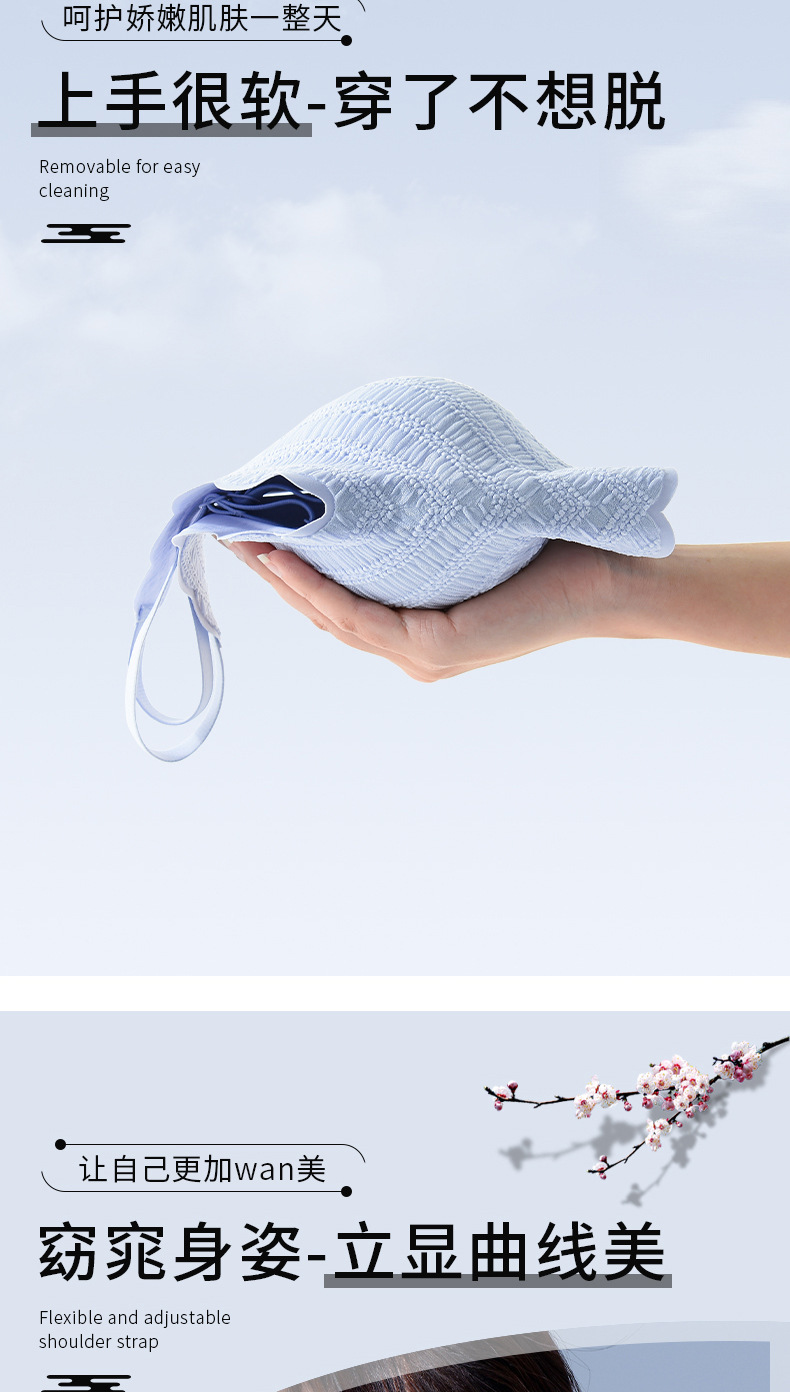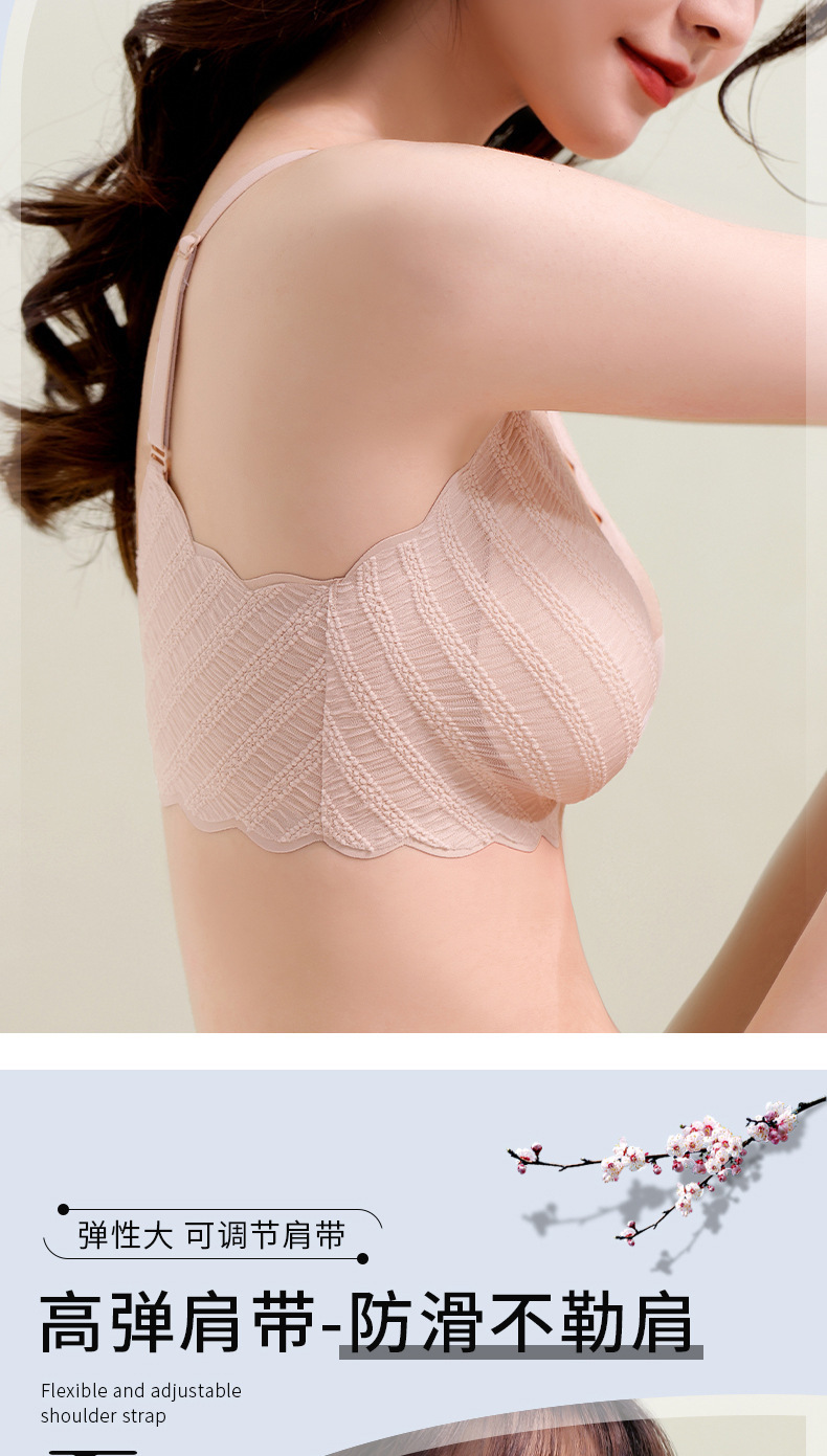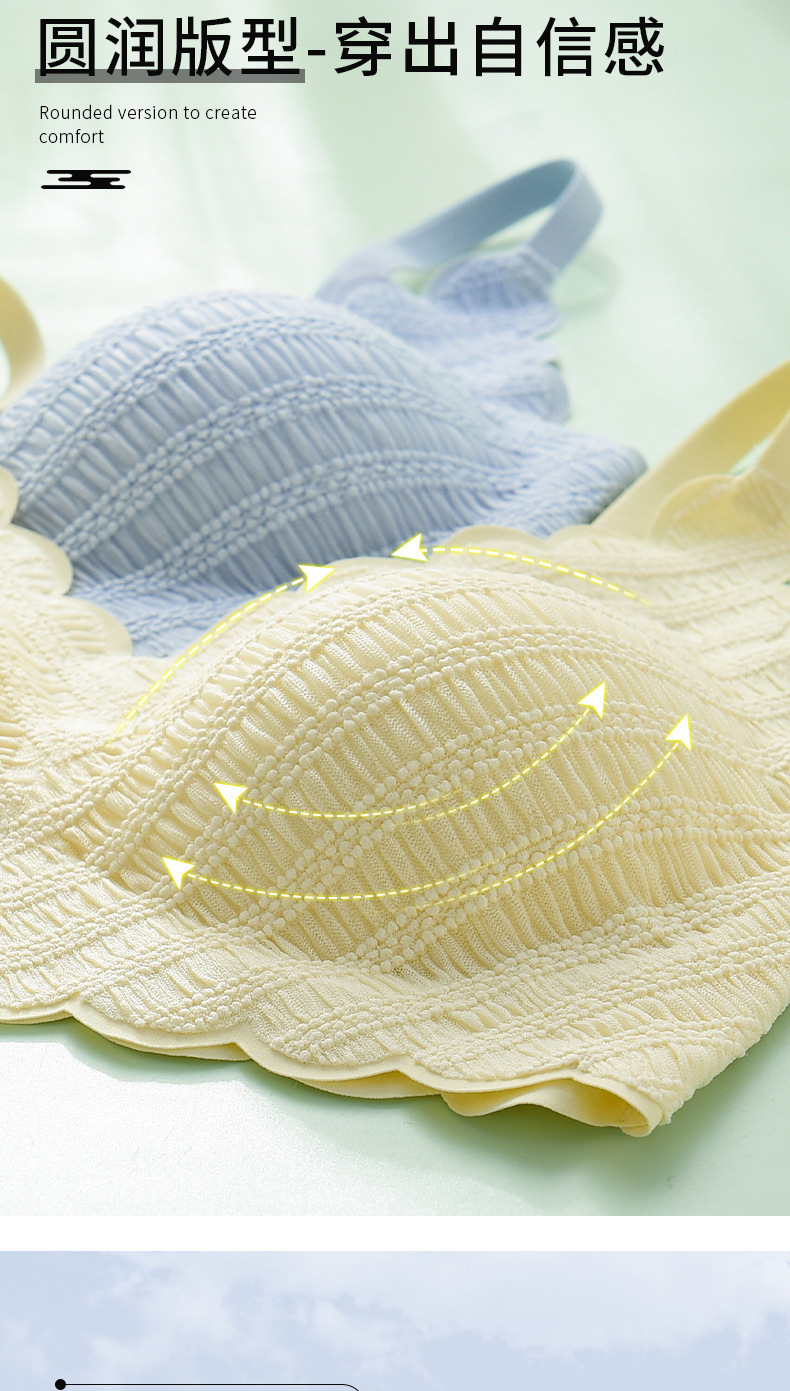 描述:功能:按摩,定型,聚拢,透气,上托,塑身,一次性,无缝,美背,吸汗,防走光,调整型,舒适,侧收,收副乳,大胸显小,其他,货源类别:现货,货号:AL673604758974,品牌:高诗婷,是否支持贴牌:支持,是否支持代工:不支持,主面料成分:锦纶/尼龙,面料名称:条纹泡泡蕾丝,主面料成分的含量:96.6,里料成分:锦纶/尼龙,里料成分含量:75.1,款式:U型,产地:潮汕,适用人群:青年女性,风格:性感妩媚,是否无缝:否,是否有钢圈:无钢圈,设计特色:提花,蕾丝边,一片式,罩杯型:3/4罩杯,模杯类型:上薄下厚,肩带类型:固定双肩带,排扣类型:无排扣,误差范围:1-2cm,适合季节:夏季,四季通用,是否外贸:否,是否库存:是,库存类型:整单,改版:不可改版,最低贴牌量:2000,合作过品牌:黛娅菲,贴牌对象:国内知名品牌,国际知名品牌,淘宝卖家,天猫品牌,主要销售渠道:淘宝,超市,商场,品牌店,天猫,个体实体,是否进口:否,颜色:浅黄色,粉肤色,浅蓝色,古典黑,尺码:M=32/70ABC,L=34/75ABC,XL=36/80ABC,2XL=38/85ABC,是否跨境出口专供货源:否,肩带材质:锦纶,上市时间:2022年夏季,包装形式:袋装,适用年龄段:青年(18-40周岁),是否可外穿:不可外穿,