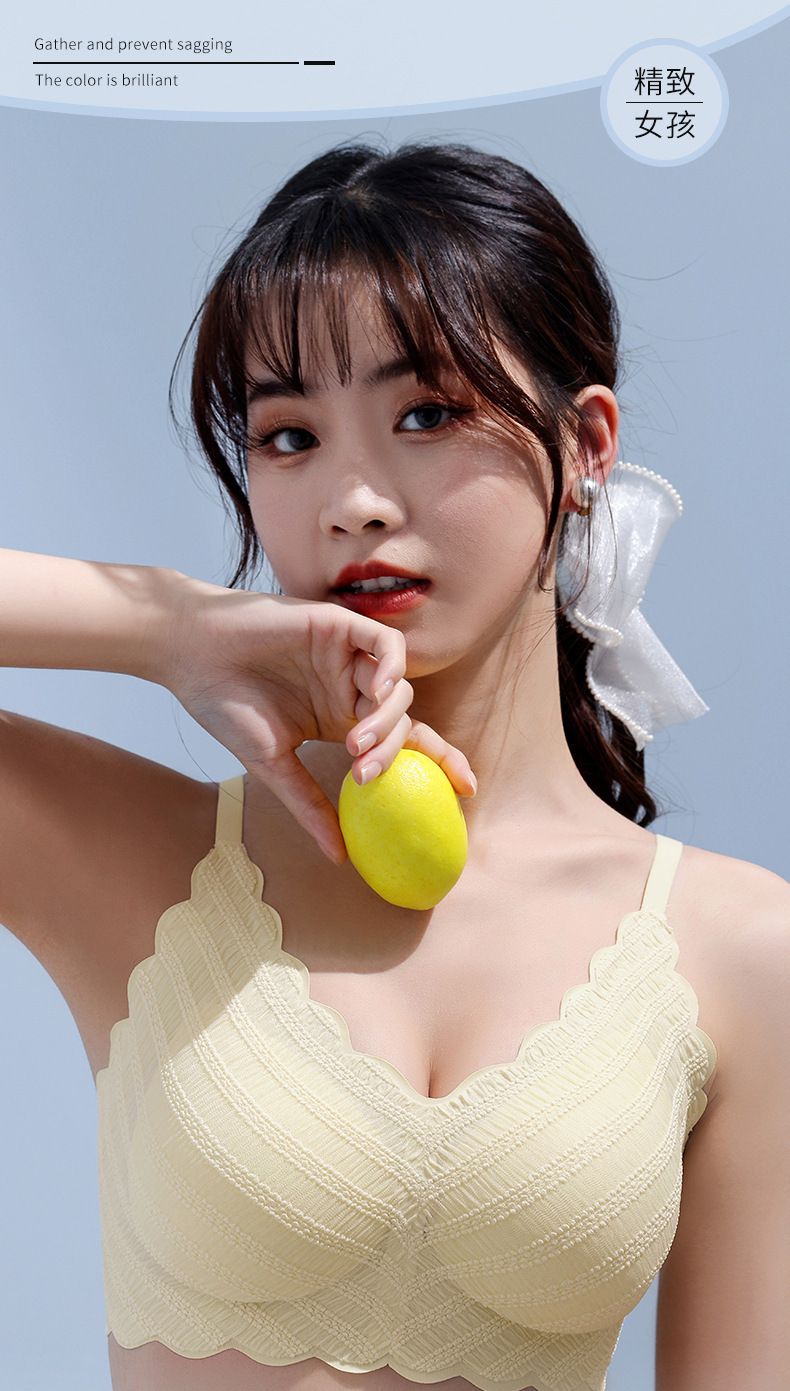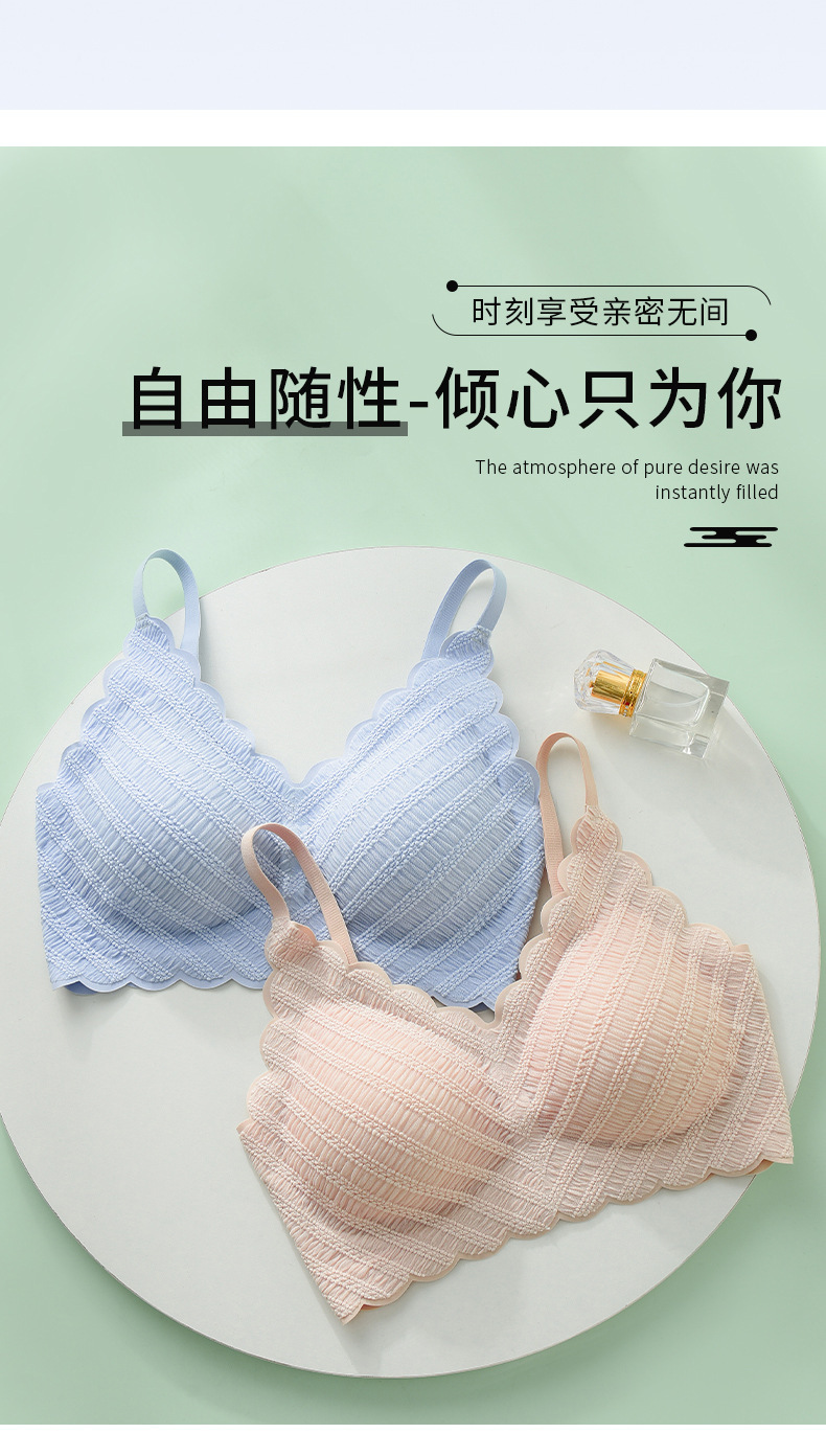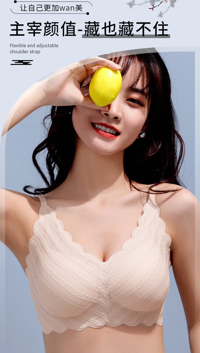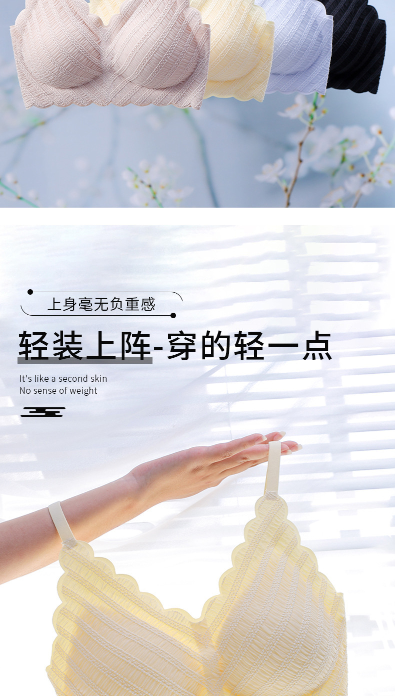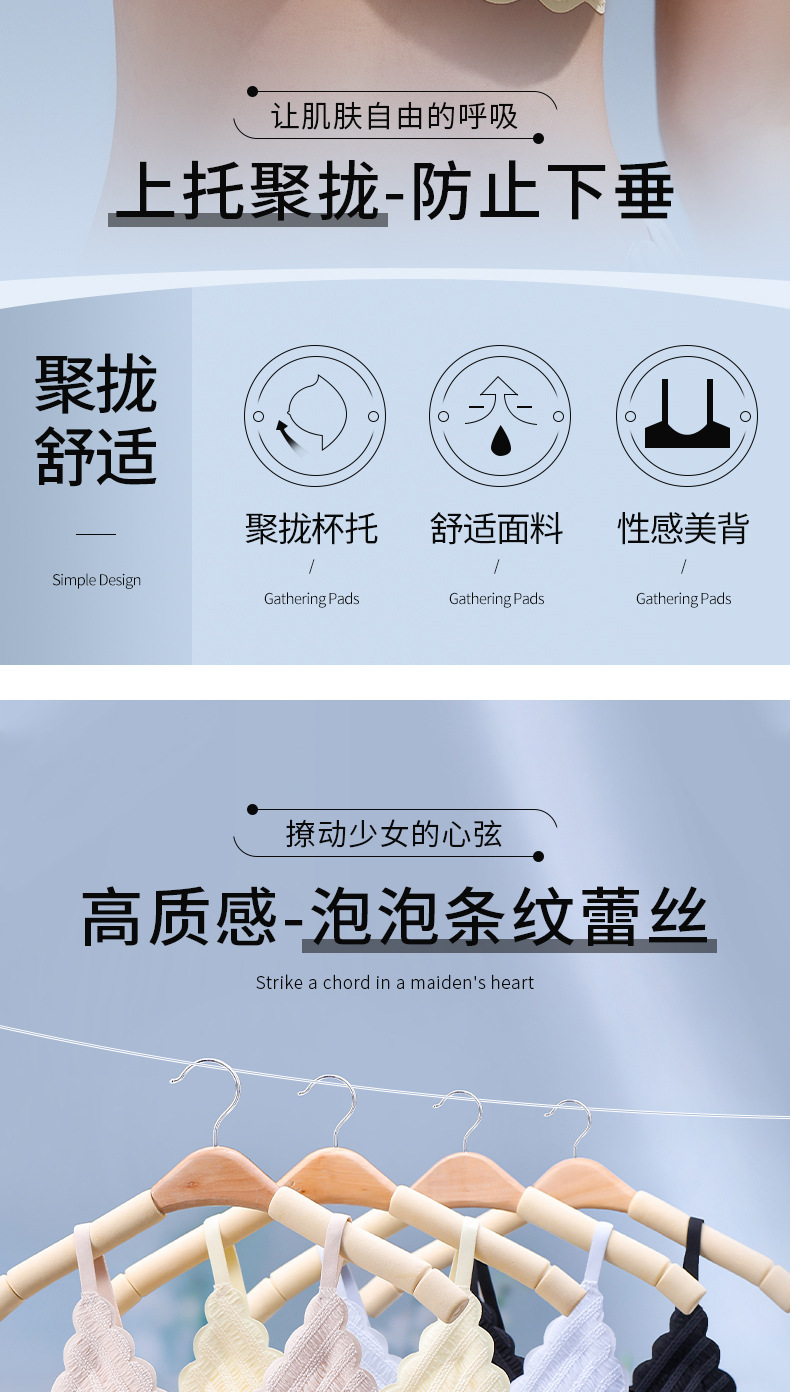 标题:泡泡蕾丝U型美背吊带一片式无痕内衣女士小胸薄款无钢圈文胸批发