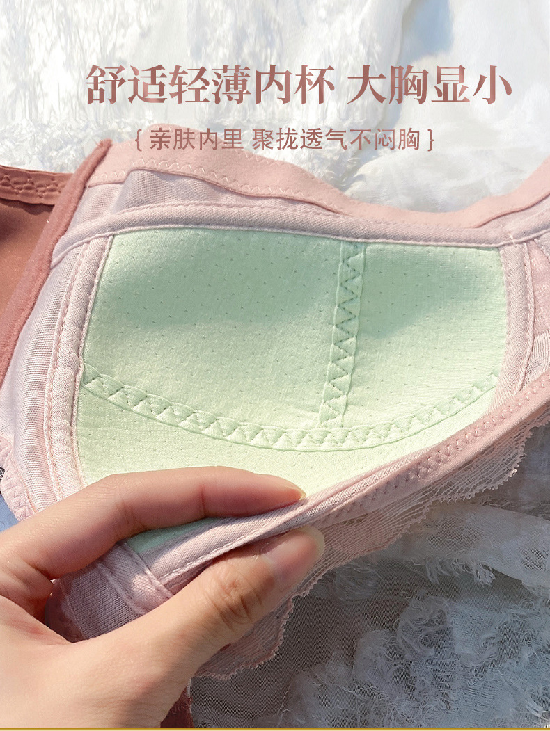 描述:面料名称:蕾丝,品牌:其他,货号:02,货源类别:现货,是否支持贴牌:不支持,是否支持代工:不支持,主面料成分:锦纶/尼龙,主面料成分的含量:80,里料成分:棉,里料成分含量:50,款式:传统型,功能:聚拢,透气,调整型,舒适,侧收,大胸显小,产地:汕头,适用人群:青年女性,风格:蕾丝公主,是否无缝:否,是否有钢圈:无钢圈,设计特色:蕾丝边,罩杯型:全罩杯,模杯类型:薄模杯,肩带类型:固定双肩带,排扣类型:后四排搭扣,误差范围:1cm,适合季节:四季通用,是否外贸:否,是否库存:是,库存类型:整单,是否进口:否,颜色:芋紫色,桃红色,深水蓝,深紫色,尺码:36/80BCD,38/85BCD,40/90BCD,42/95BCD,44/100BCD,46/105BCD,是否跨境出口专供货源:否,肩带材质:尼龙或莱卡,上市时间:2022年秋季,包装形式:简装,适用年龄段:青年(18-40周岁),是否可外穿:不可外穿,