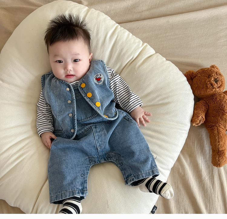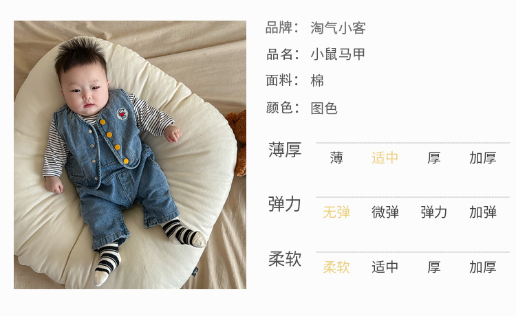 标题:婴儿马甲背心外穿春秋季洋气男女宝宝休闲牛仔马甲坎肩外套百搭春